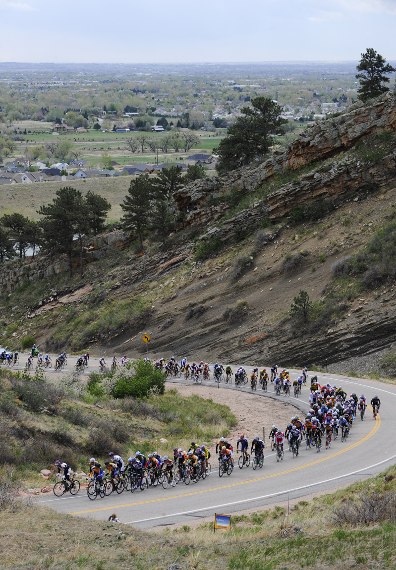 As individuals were called up to the line to start, dark clouds started building up in the north. To the east, the sky was calmer, mimicking the flat planes below. To the west, lay our destination: the beginning of the Rocky Mountains. The mountains rose straight up from the flat ground of Fort Collins. The roads there are steep and the switch-backs are painfull. It was a hilly course.