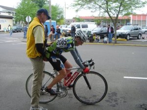 The crit was sketchy, with lots of bad crashes. One crash was bad enough that the race officials stopped everyone while an ambulance took away the injured rider. We started up again and immediately another group of riders went down.