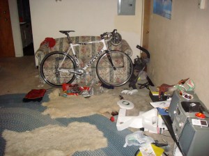 The Apartment Posted on May 7, 2008 by kennettron This is what a college cyclist’s house looks like. And we just cleaned too!