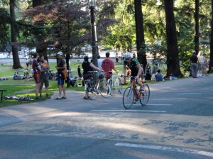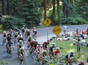 Tony trying to take out more spectators on the sidewalk (he’s right behind the bump sign). This was before he careened into a pregnant woman and her two daughters. Don’t worry, the paramedics got there in time to stop the 8-year old’s internal bleeding. Post race comment from Tony, “I treat pedestrians as targets. Small children are worth 1,000 points. The elderly are worth 1,500. Double points if you break their hip.”
