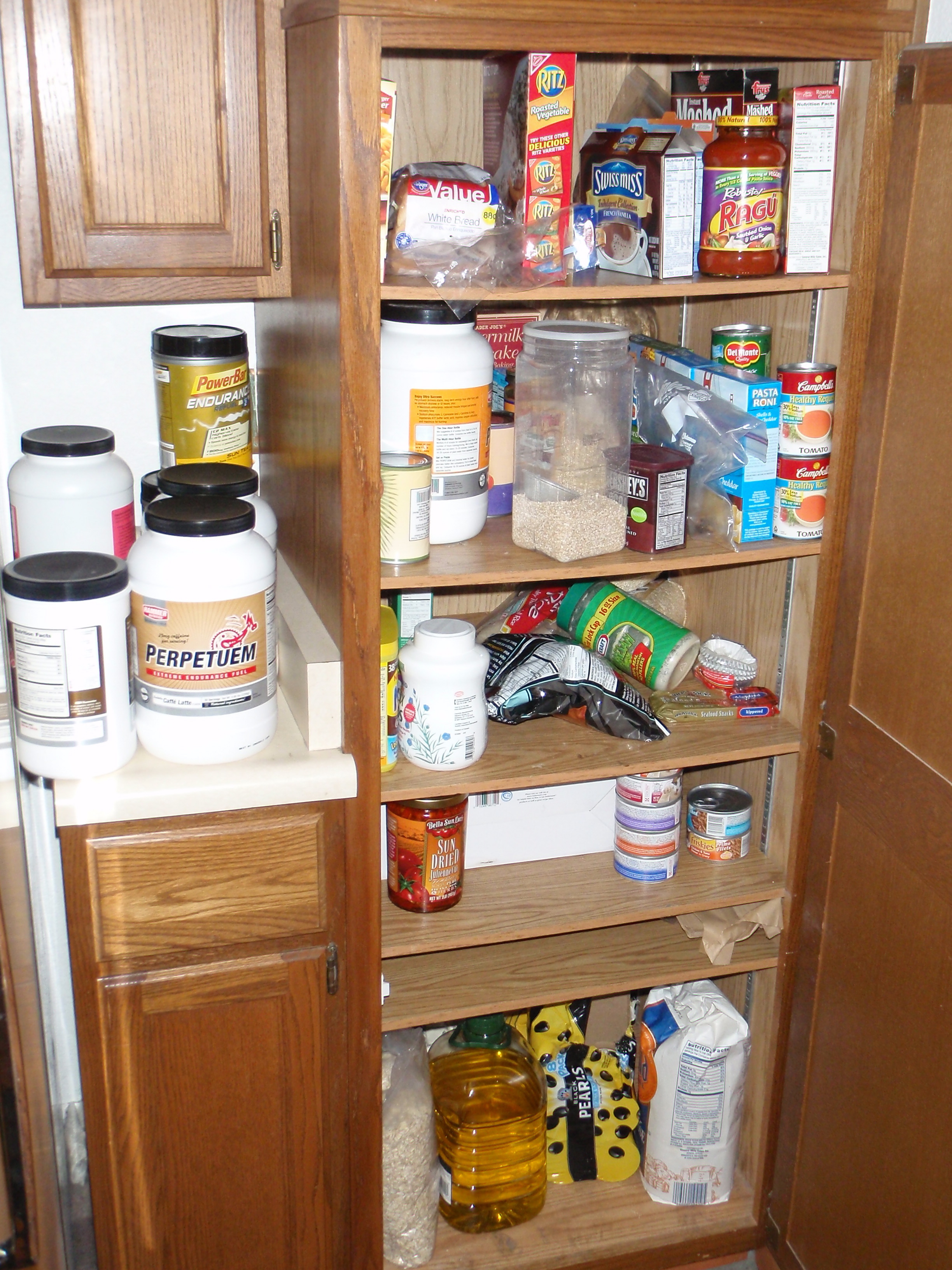 And here’s something ridiculous. The quantity of food we seem to be hoarding here at the house. Just in case there’s another Y2K or something. This is what 5,000-6,000 calories a day every day looks like.