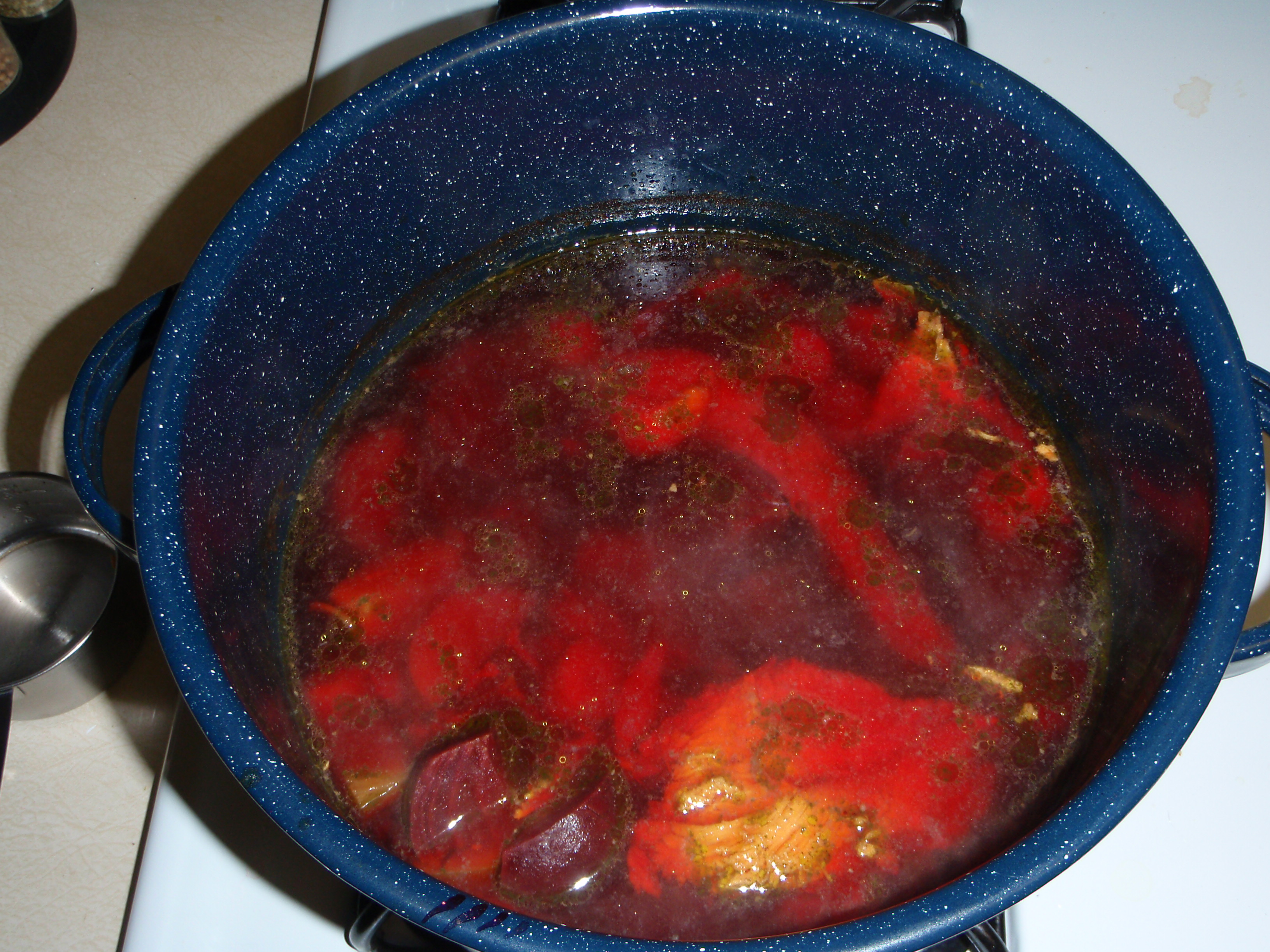 Beet soup. Looks the same going in as coming out.