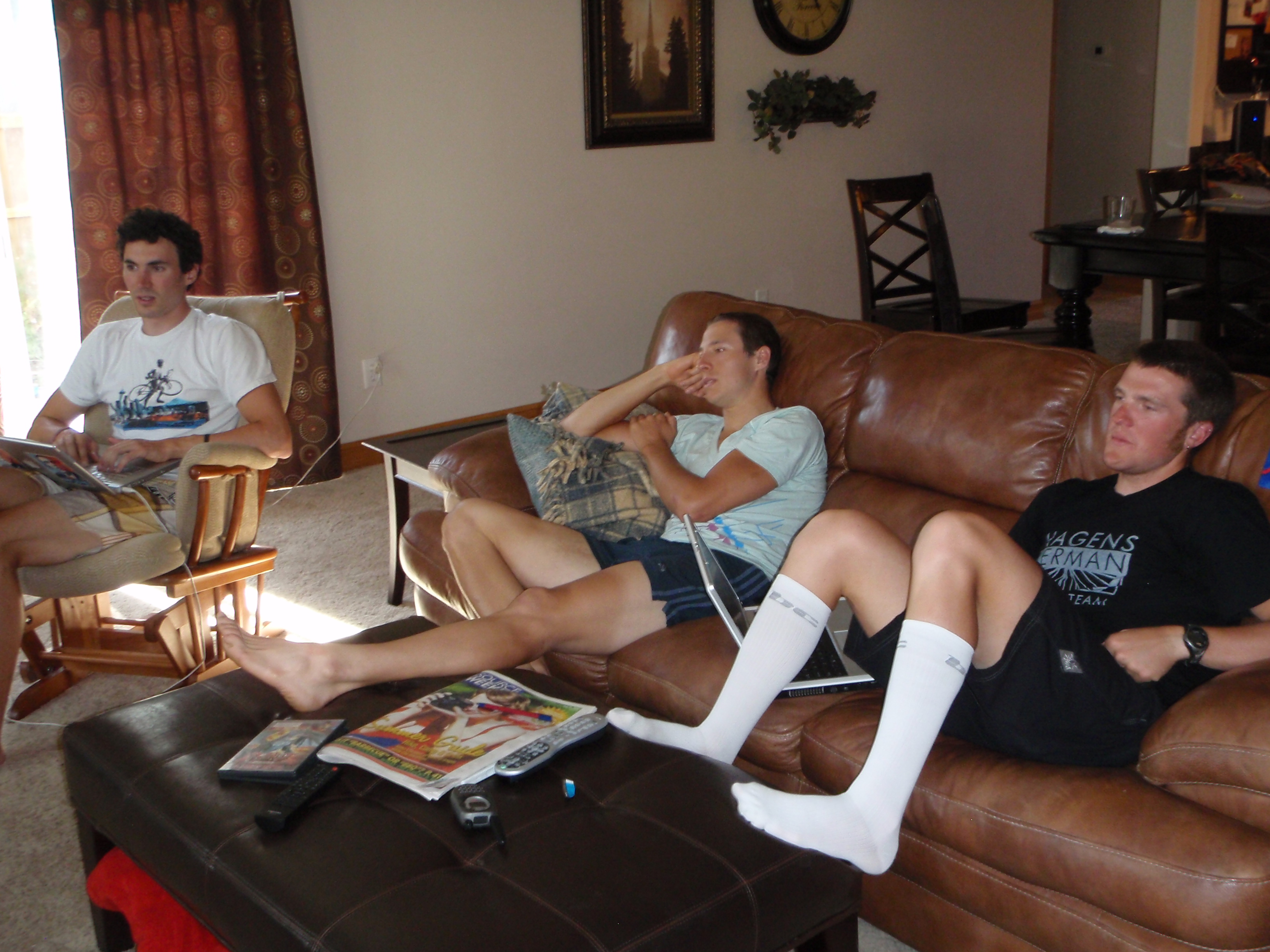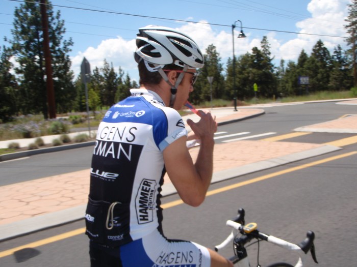 This happened last week. As in the day before yesterday and a few days before that. I’m almost caught up on my blogging race reports. As you may have noticed, I haven’t been blogging that much this year. I’ve gone over the reasons before. But I have noticed that I don’t remember anything that I don’t write down, so I have huge gaps in my memory this year, along with huge gaps in my blog. The problem is, writing events down is like taking a picture. You don’t remember what you actually saw, you remember what the picture shows. With writing, I remember what I wrote, not what actually happened. Not that I make things up or anything on here… So with that in mind (and it’s only in mind because I wrote it down up there in that other paragraph) I’ve decided to try to write more in this blog so I can remember things more good. On to the good part: Well, not the good part. The good part is the pictures. When I used to read other people’s blogs, I’d only read the words briefly and then look at the pictures. Same thing goes for a book with pictures. The words are just filler. So, on with the second best good part: Day 1: I’m counting day 1 as Monday, the day Sean and I waited around in the airport for a full day and flying from one coast to the other while we made our way to Portland from Minnesota. I pretty much just explained this day. Plus we drove to Bend once we got to Portland. We got there late. 1:30am. Plus we were on midwest time so it was more like 3:30am. I slept in Sean’s sister’s bed. She was not in it. Dang. Day 2: Sean and I went on an easy ride. I felt terrible. My cold was just about gone by then, actually it would be gone in another day, but my legs felt terrible anyways from all the racing and traveling. Sean’s didn’t feel good either, but once he found out how bad mine felt, he tried to put the hammer down just a little. Plus he was on his TT bike. This is what teammates are for. Later that evening, Lang, Phil, and Sam showed up in the team van and picked me up and we all went across town to our host house. Day 3: I won the sleeping contest, logging a full 11+ hours. We played a lot of video games today. In the morning though, I rode over to Quinn’s RV, which was parked near the TT and road race course, and hung out while he made some strange concoction of coffee/thai food. I’m not sure what it was, but it was breakfast for a hungry Quinner, who hadn’t showered since Saturday? I cut my toenails in someone’s lawn that Quinn was parked in front of. Then we went on a ride around the road course. It was sunny and warm again, like the day before. My legs were feeling less terrible. I rode home and ate and played video games and made jokes with the rest of the guys about Spencer’s mother. Spencer is on our team but isn’t at most races with us. We like Spencer. But we like his mom better. Spencer is from Canada. I can’t remember who has access to this blog other than my mom and both my grandmothers. Day 4: Lang and I rode out to cheer on our teammates at the time trial course. Neither of us raced it, since we were pretty sure neither of us would place in the top 10. Sam placed 10th, although to him it was a disappointment since he was hoping for a top 3 or a win. Later, Lang and I rode the road race course again, my legs felt very good today. I did an effort on the main climb of the race and dropped a junior who had been drafting off of us for the entire lap and had never said a word to us. Lang rode up easy. Lang is a whimp. Not really though. Day 5: Race day! Phill, Lang, and I did the road race course again in the morning, played some video games in the afternoon, and rode our bikes out to the crit course in the evening. It was a 50 mile crit, starting at 7:30pm. There was a good crowd, but not humungous like the USAC brochure assured us it would be. Doesn’t matter though, I got about 20 gatorade bars from them during my sign in the previous day. The race started, I attacked on the 3rd lap. Didn’t get away. Attacked again a little later and didn’t get away. Then I drifted to about 50 guys back and started day dreaming because the race was so boring and it was so easy to sit in. Another 90 minutes to go. I moved up eventually and threw in a BIG attack and got away for a lap and a half by myself. Apparently there were like 8 guys trying to bridge up to me, and Joe yelled this to me as I went by him, but they and I were all caught before we hooked up. This crit course was stupid. 4 corners, completely flat. My legs were feeling very good, but there was nothing I could do. Nothing anyone could do. It was simply too easy of a course to sit in, making breakaways very hard. So it came down to a bunch sprint. I think there were only about 30-40 guys left in the pack with 4 laps to go. I was towards the front of it, about 15 back. On corner 3, a couple guys crashed. I braked and rode into them, hoping off my bike somehow and landing on my feet. A couple more guys crashed behind me and on top of my bike. By the time I got my bike free, the peloton was long gone and there were no more free laps. I sprinted for a half lap, then gave up. I was pulled a lap later. I was so mad I threw a little tantrum back in an ally way. There was nothing to punch. Nothing to smash. So I didn’t. I calmed down a bit and watched the finish. I swore under my breath at the guy who won. At all the racers who finished. I got my wheel trued by Shimano and met up with the team. No one had done well in the sprint. Later, some drunk hooligans tried to tell Quinn and I that it was rude to stop in the middle of the sidewalk right in front of them as they were walking. I said some things back, hoping they’d retaliate. They did not. I was still furious apparently. It was ptich black as we rode home, Quinn coming along for dinner not served out of a can. Some guys on motorcycles cut me off and I swore at them loudly, still furious and wanting to punch something. We got ho
