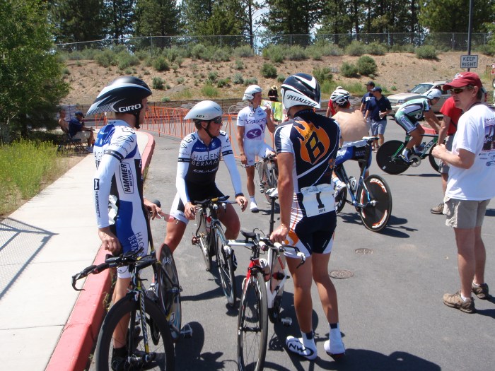 We all watched as the four of them slowly rode away from us. Anyone could have bridged across but no one did. At the top of the climb, two guys went off after them. Now it was just four of us in the last group. I continued to sit in, along with a Yahoo guy, while the other two did all the work. At the top of the climb the Yahoo guy and I started working to pull back the two guys in pursuit of the four up the road. We didn’t work very hard though. The four of us eventually caught them. Now our gap was only a minute to the pack and 2 minutes to the lead break. We were doomed unless the four guys without teammates up the road really started pulling hard. They did not. And shortly after 2.5 laps, I flatted. No wheel car came until after the main field passed me. I drafted Joe in the team car back to the pack and sat in for a long long time, very angry. We had three and a half laps to go. Within a half lap, the group I was in was caught. Within one more lap, Sean’s group was caught. Now the pace started to get higher on the climbs. I worried about positioning and tried to stay near the front coming into the feed zone climb, the tailwind section at the top of that, and the steep climb afterwards. With two times to go up the feed zone climb, the field broke apart a bit. Olheiser attacked and got away and somehow soloed for the win over the next lap and a half. Not humanly possible for a non-world champion in my opinion. Oh wait, he’s the 30+ world champion. Still, not humanly possible in my opinion. Anyways, breaks tried and failed to get any permanent grounds on the field. Lang tried hard. Quinn tried hard. Nothing could stick. We went up the feed zone climb and the field shattered even more. I was still in there, to my disbelief. I was starting to fantasize about the finish just a little. But not for long because the pace on the tailwind section was brutal, and the steep climb after it was brutal too. I took a corner hot on the downhill before the climb and hit a big chunk of gravel and my rear wheel slid out. I swore. And stayed upright. I wasn’t sure if my tire was still holding air though. Nothing I could do about it now though. The pace up the steep climb was hard, but not too bad. The field shattered even more, and by the top of the climb and the short downhill and the climb after it, there were only 20 of us left. Maybe less. With 3K to go, some guys attacked at the top of a little riser. I was too far back to respond, and didn’t think it was worth responding anyways since they would surely be chased down immediately. They were not. And they stayed away to the finish by a few seconds. In fact, the last of them only stayed away by 1 second. 2k to go and I was at the back of what was left of our group of 6? 10? 15? I don’t know. Gaps opened going up the false flat as we sped towards the finish at 30mph. One opened in front of Lang and I yelled for him to close it. He did, and I followed his wheel around the roundabout. I hadn’t felt any pain whatsoever in the last 2K. And with 250 meters to go, I still did not. And I unleashed a wicked sprint and passed about 6 guys like they were standing still. At the finish line I had multiple bike lengths from me to the next guy behind me. But it was only good enough for 9th. The seven guys in front had stayed away by a few seconds, including my teammate Chris, and Mike Olheiser stayed away by himself to win by almost a minute. I was immediately happy, relieved to have made it to the end and gotten a chance to sprint, but also immediately pissed at myself for not following the attack at 3K to go. I could have stayed with it, no problem. Yes, I was suffering and tired by then, but I certainly could have pushed out another 80 watts over the too of that 3k to go riser and stayed with the move. And I don’t mean to sound cocky, but there is no one in the world who could have beaten me at that last 250 meter sprint. Not even a fully fresh Cavendish who only had to race 250 meters and hadn’t done the other 99 miles of the race. Not even a wagon team of clydesdales fueled by genetically modified oats–designed to create mutant-strength farts, which were lighted by a spark mechanism attached to their tails, creating a rocket boost to launch them into outer space. No one could have beaten me in that damn sprint I know it!!! Damn it why didn’t I just follow that move!!!!??? It wouldn’t have been for the win, but it would at least have been for 2nd!!
