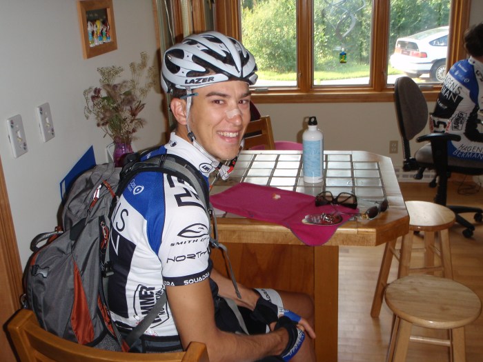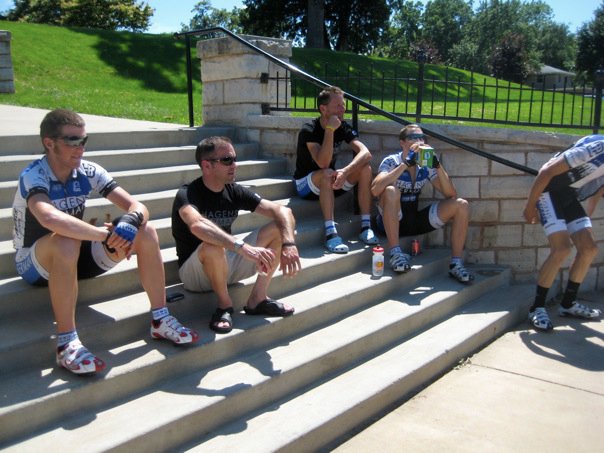 The team rode home from the race, which took about 2 hours. I probably shouldn’t have ridden home. I felt very sick and tired. But it was a good ride along a bike path and it was warm and humid out. I think the only reason my cold didn’t get worse throughout the race was due to the hot and humid air. If I had been in Oregon doing this race, I’d probably have pneumonia or mono right now. I’ll upload some more photos from the trip later. Time to go ride.