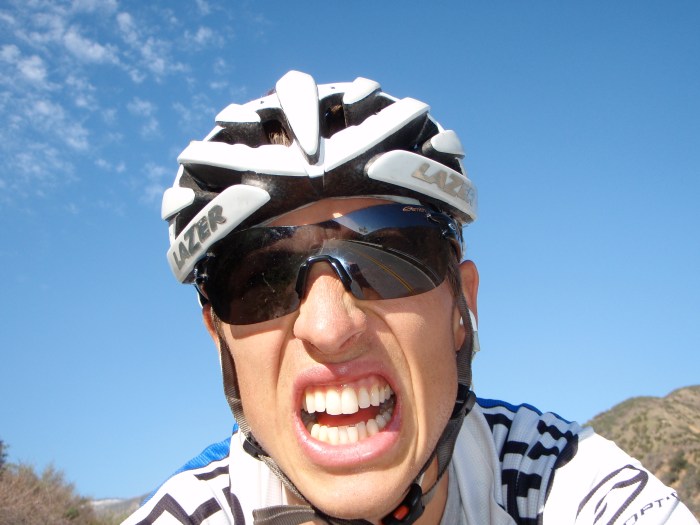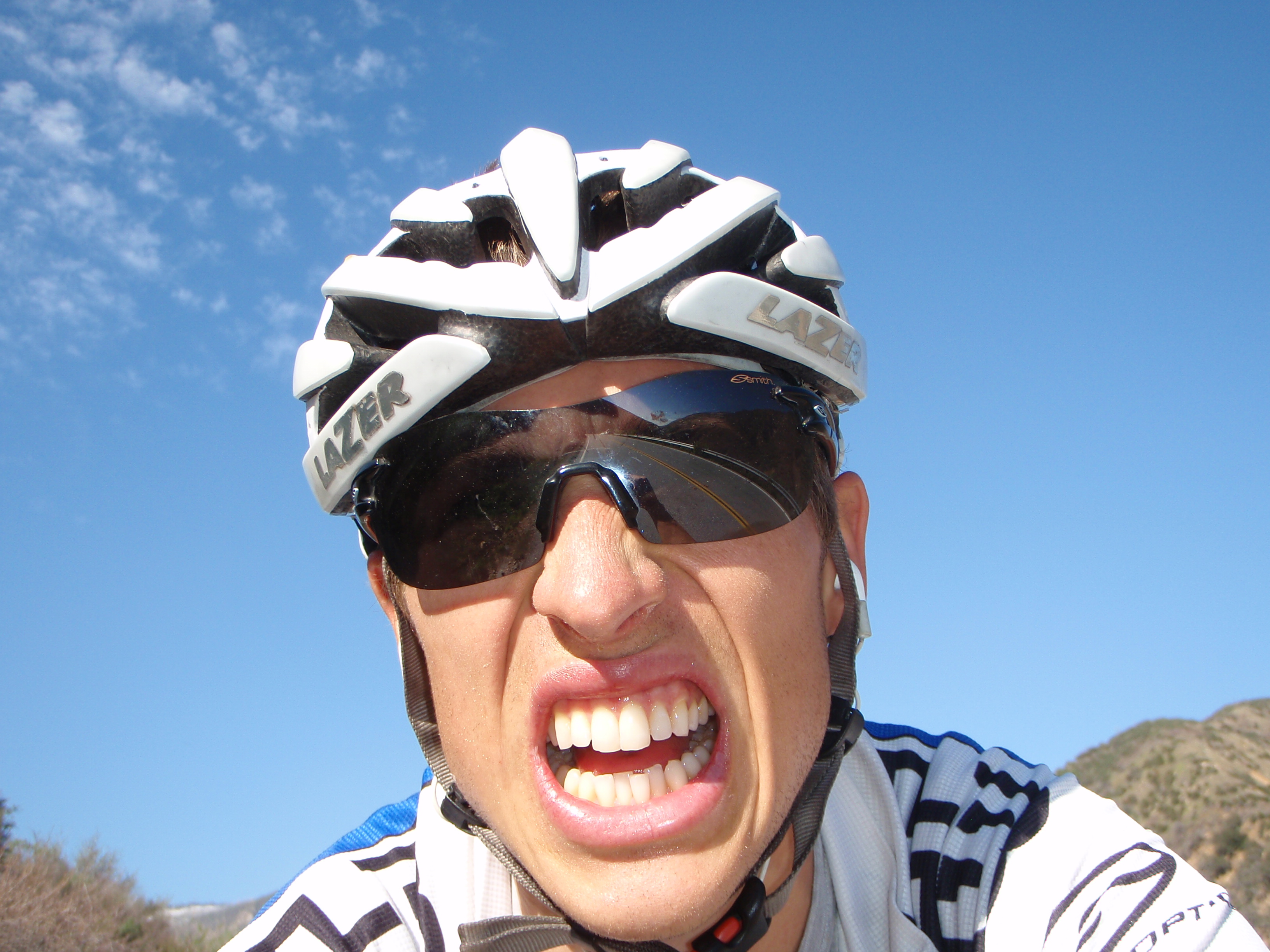 Anyways, I turned around and did my intervals on the lower slopes.  They were hard.  Listen to these three songs while you look at the picture of agony on my face, and you can get an idea of what the intervals were like (you know they hurt because I took this picture about 15 minutes after I was finished).