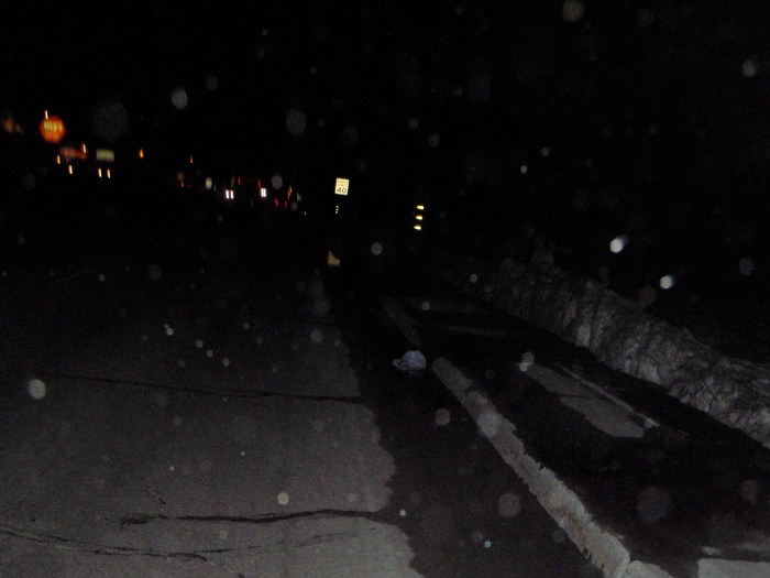 Goodbye, sun.  Hello, getting run over by a car in the dark.  And hello, unavoidable since they’re now un-see-able, patches of slush and gravel.