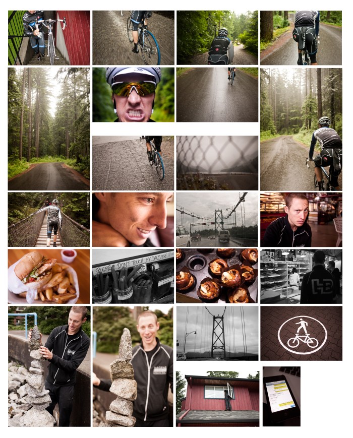 We started off at the wee hour of 9AM, which in Canook land is actually closer to 8AM since it’s further away from the equator and thusly further from the sun. Chris and I were groggy and tired that morning as we woke at 6AM, the previous day had been filled with strenuous activities such as stacking rocks by the water and eating chicken burgers down by the docks in Vancouver, and then getting locked out of Chris’ grandparents’ house and having to climb through the upstairs window to get in. The 134 kilometer stage loomed on my mind’s horizon as I prepared my morning feast. For breakfast: 1/2 cup of steel cut oats with blueberries, strawberries, raspberries and two bananas. Two eggs, two pieces of bacon, small serving of potatoes with veggies. 2 liters of water. 1.5 cups of coffee. Fueled for a day of suffering, we headed out the door and drove over to White Rock for the race.