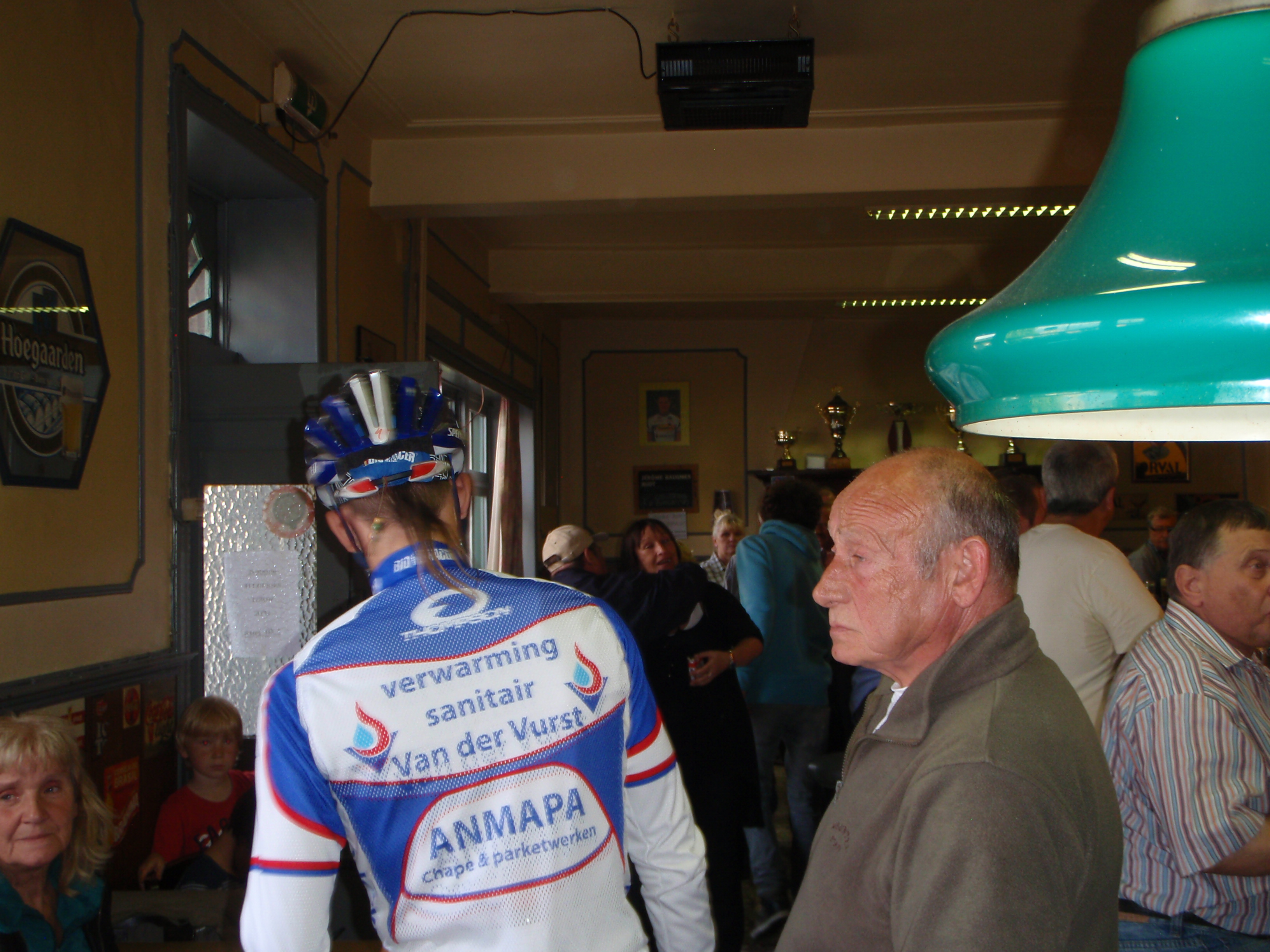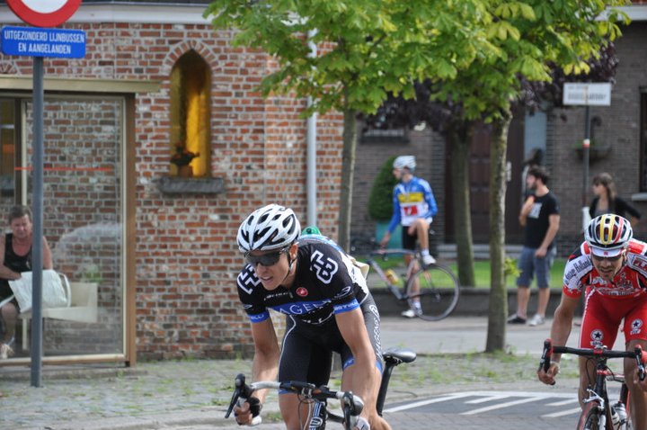 We came into the final K with seven guys. Somehow I ended up getting second to last in our group’s sprint after being outwitted when two guys got a gap and no one wanted to pull them back. Of course I ended up trying to sprint up to them with 400 meters to go and I lost the valuable placing for 28th and took 34th instead. Terrible result. I had the legs today but apparently not the brains or positioning skills. I never know how these kermesses are going play out. I thought the move either goes in the first 30 minutes or goes with about an hour left to race, but apparently that’s not how it always works–or has ever worked since I got here. So far the winning move has been very late in the race or, like today, mid-way through. It’s almost as if it’s planned and the strong guys who usually win know about it and just sit and wait until the pre-determined lap to get away. The legs were there but not the local course-knowledge.
