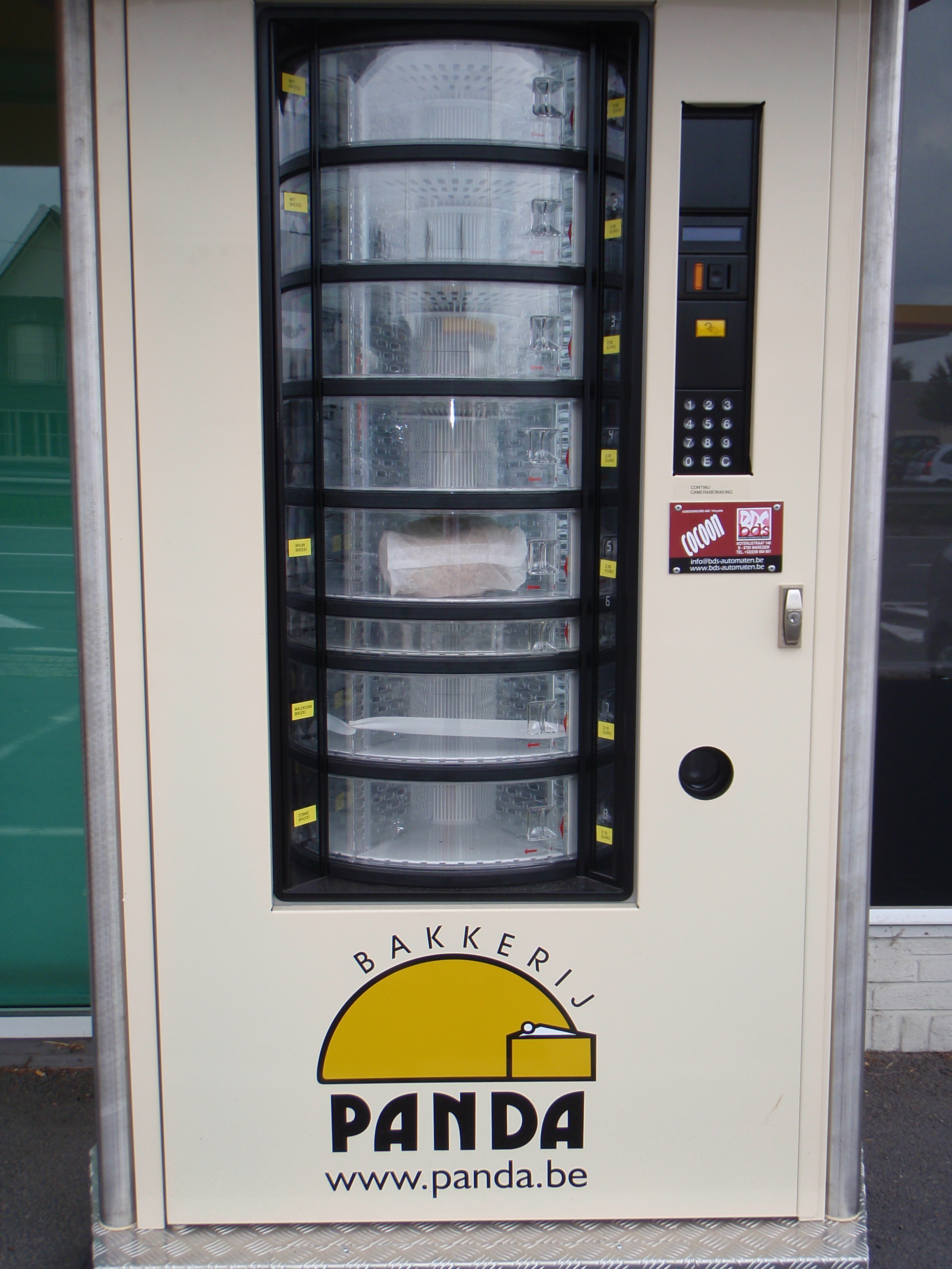 The bread machine outside our apartment downstairs. Fresh bread from the bakery every day except Sunday.