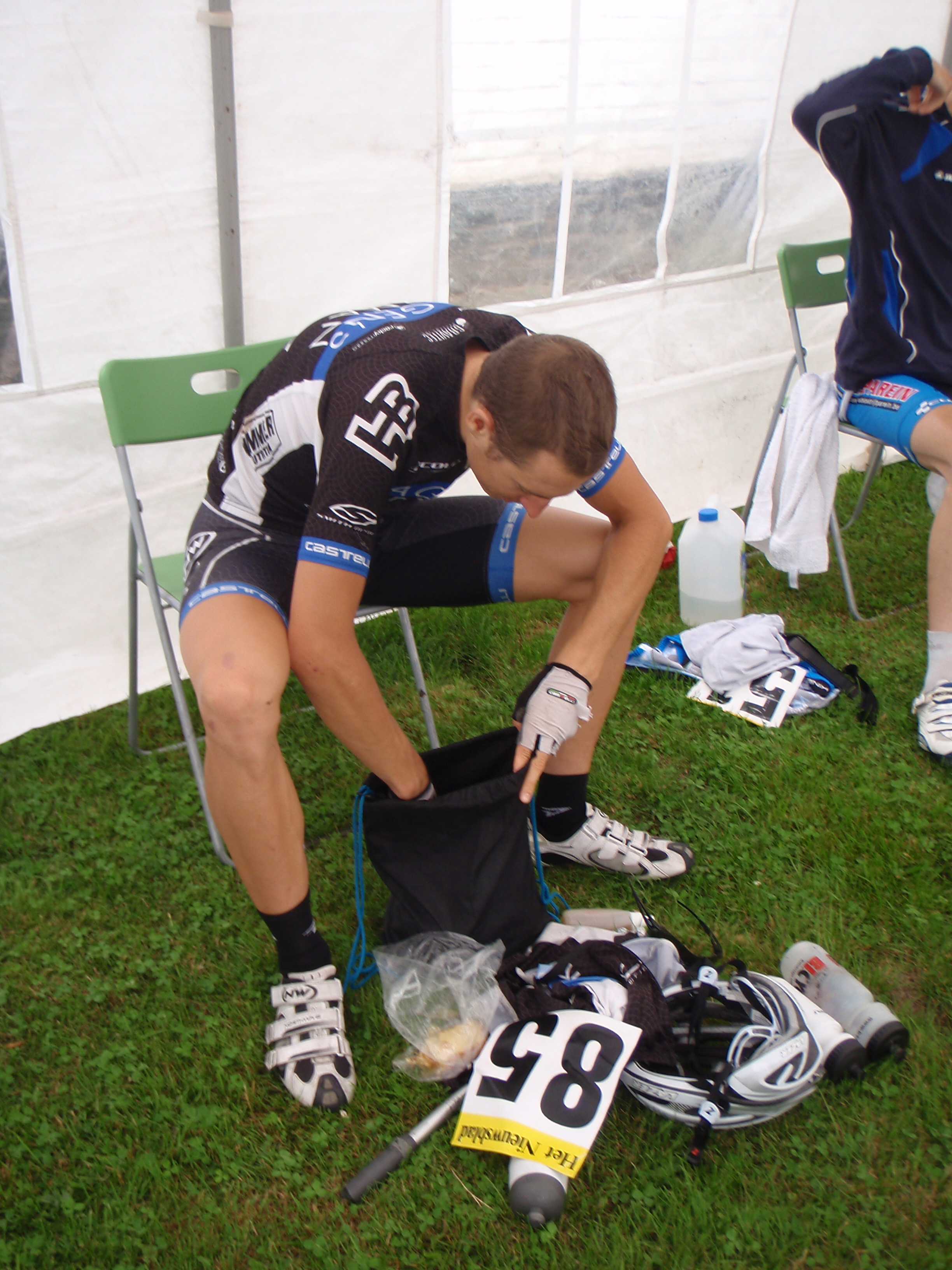 It had began pouring rain on lap five or six, just dumping like crazy and the temperature dropped from a beautiful balmy 60-degree Belgian summer evening to a dark, frigid 48 degree TYPICAL summer Belgian evening. If I could have seen where I was going through my mud-covered glasses and blood red eyes I would have seen double, because today I got what I came here for and my eyes were finally crossed good and hard.