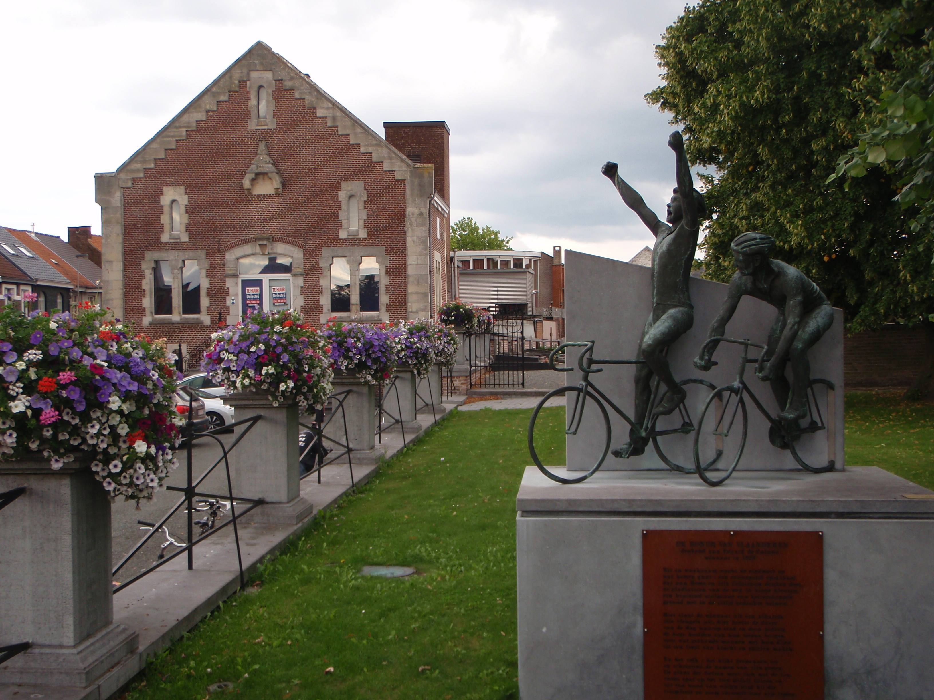 Just one of many bike racing statues. This one was right at the finish line of the Meerbeke race.