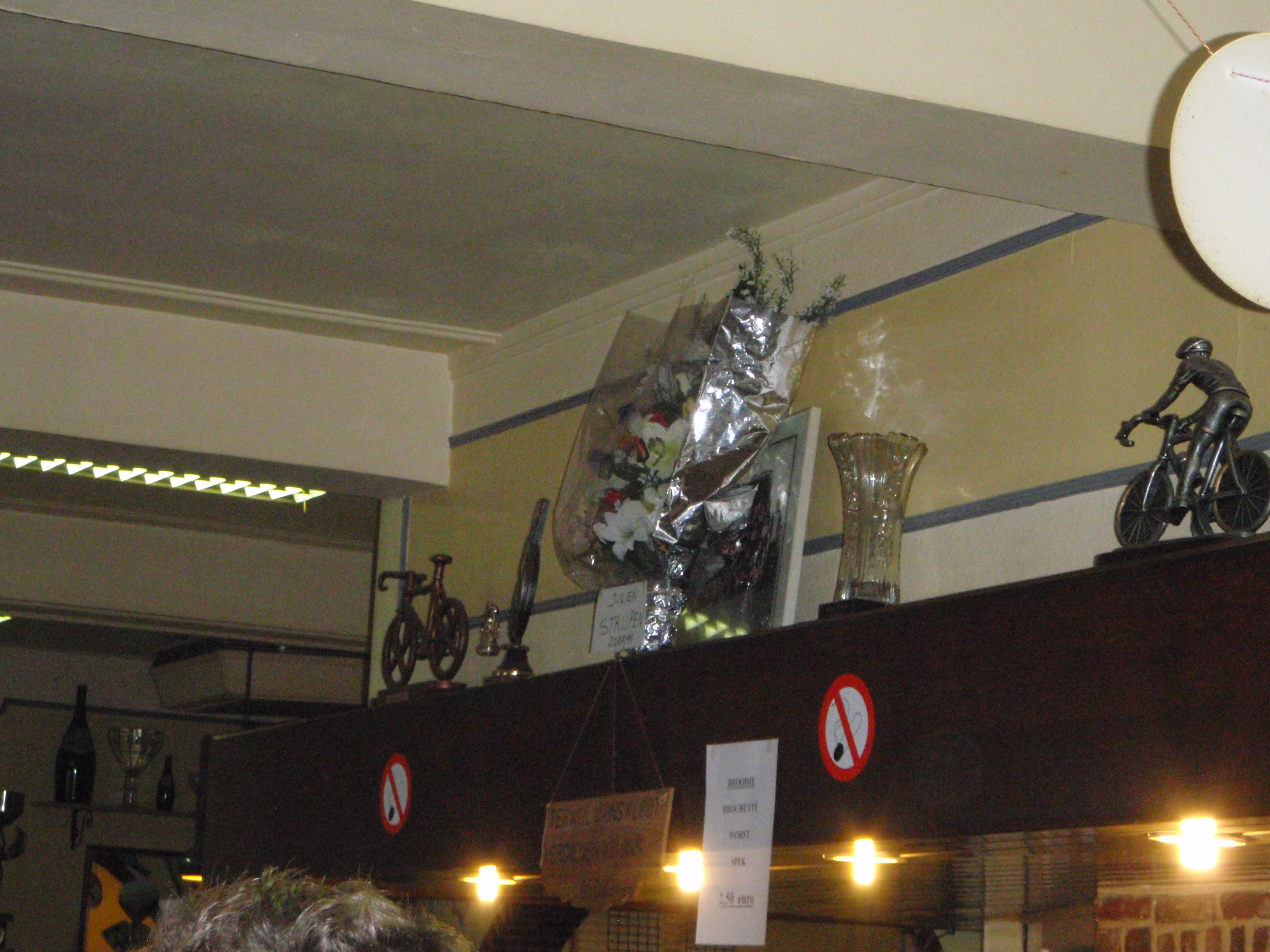 On Sunday night the TV show House is on, which is a nice break from the network “Jim”–basically MTV but it actually plays music videos. The bald guy there is “the Greek” aka Michael, who’s really from South Africa but calls himself Greek because his parents are. He’s insane, and I’m not just saying that. He’s 50 years old and believes he’s training like us for bike races, though he’s never done one and rides roughly 1 hour a day. He lived on the streets in New York for years before he decided to become a professional bike racer last year and came here to Belgium to live the dream. He never shuts up and is paranoid that people are trying to sabotage him–including a network of black, gangster spies in LA. Add about 10 IQ points to Forest Gump, a huge dose of racism, and a never ending blather of mindless talk and self-righteous argument and you’ve got Michael. I’ve come very close to taking a pillow to his head while he’s asleep. He’s entertaining in small doses but not after hard races.