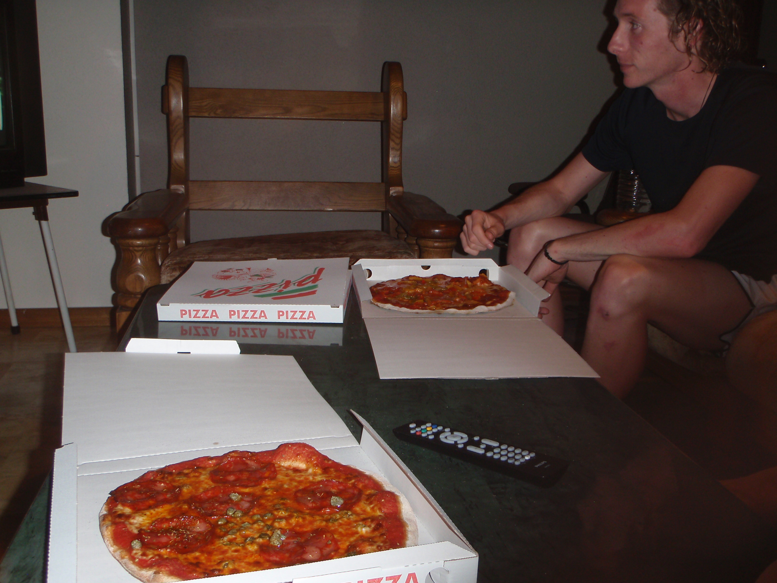 …home at last, but to an empty cupboard. Luckily there’s a huge stash of community pasta, which Justin and I put a large dent in.