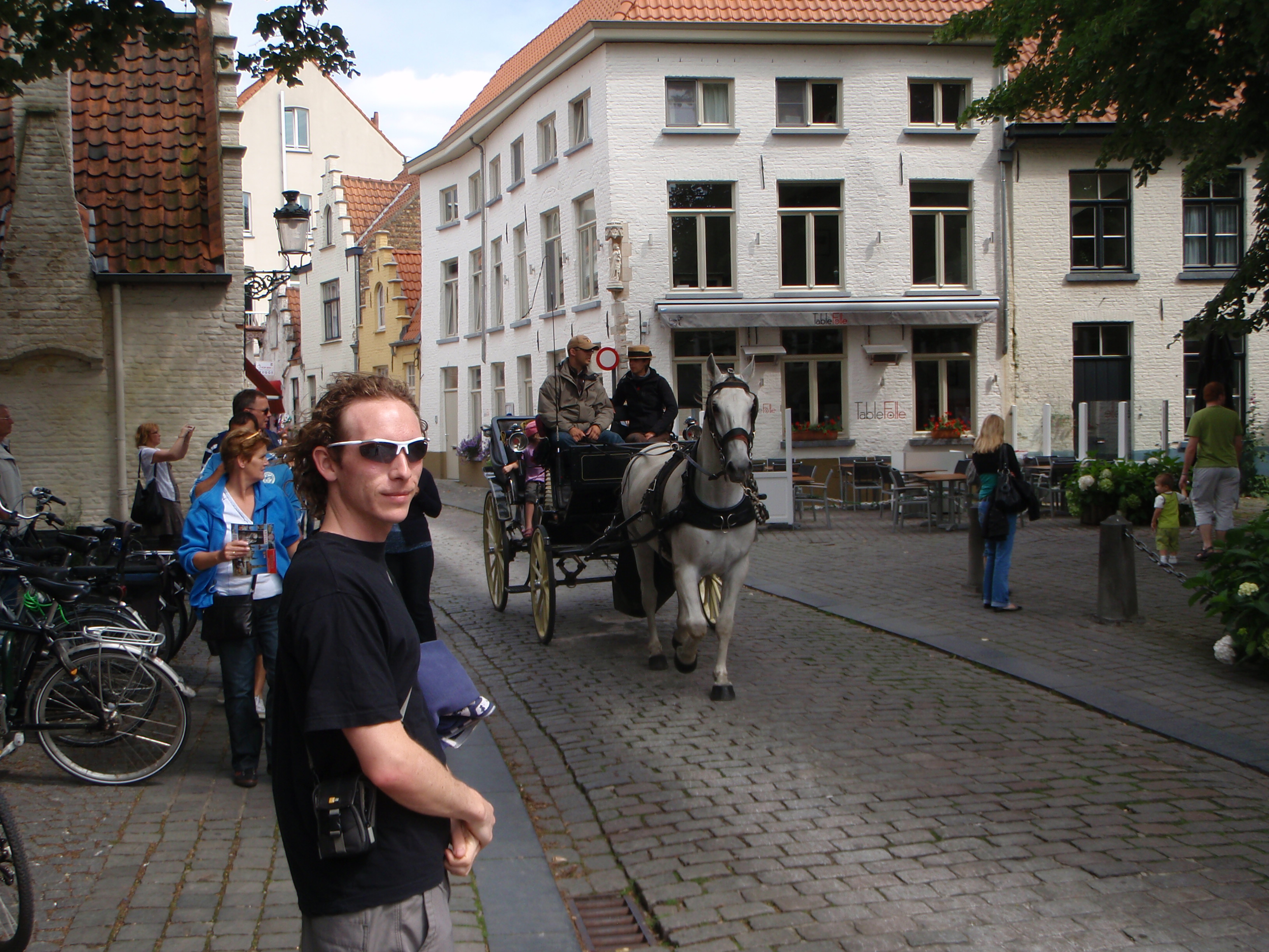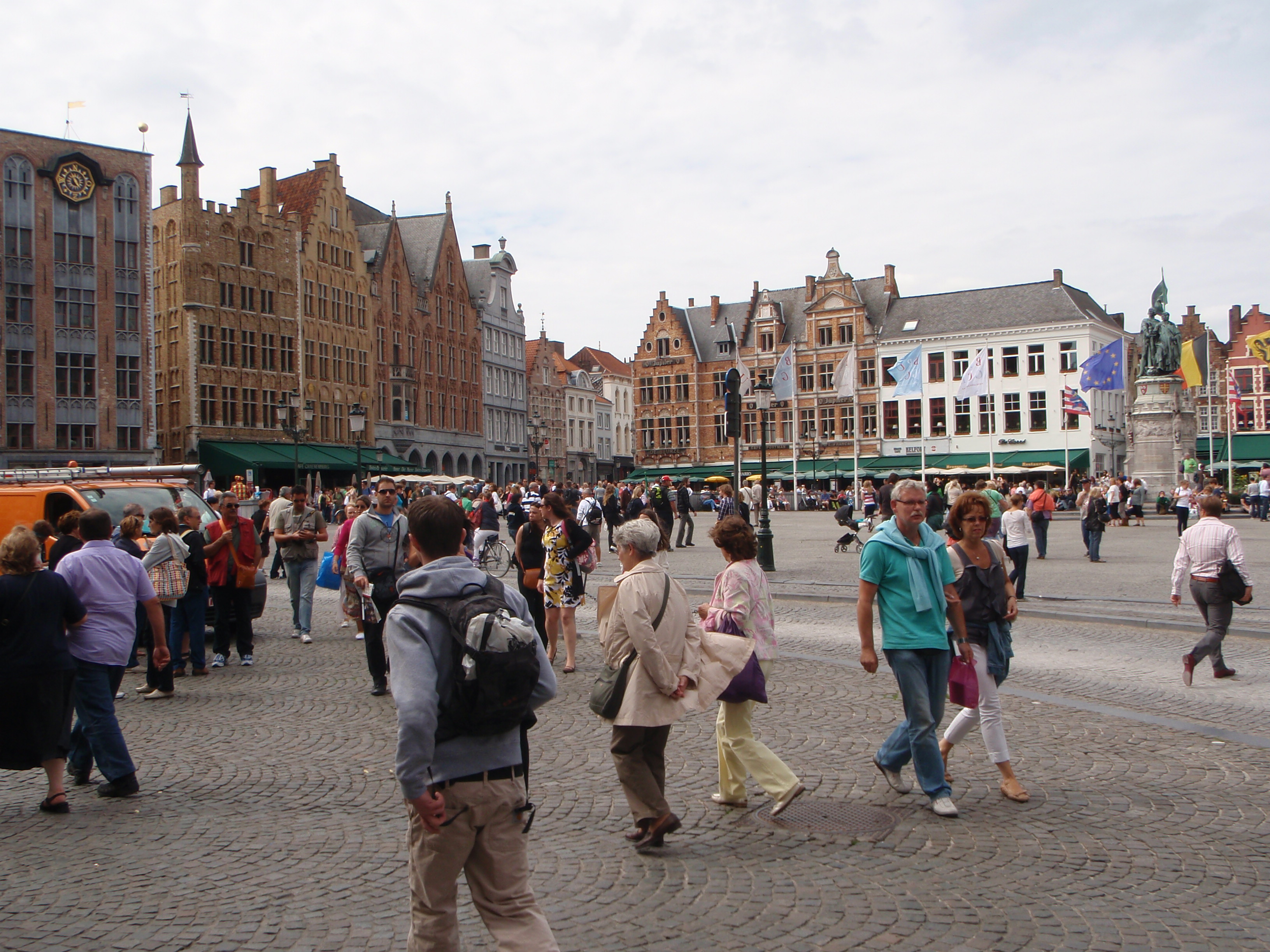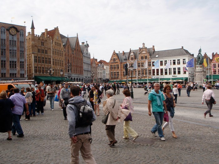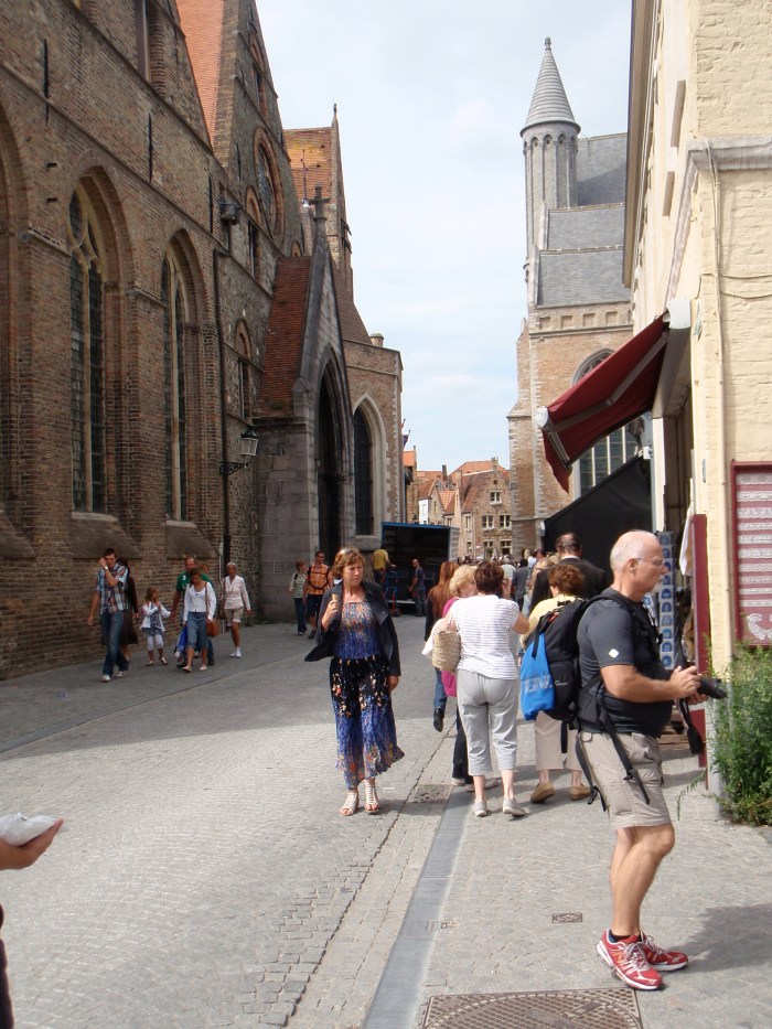 The market square. Learned via Wikipedia the night before: Brugge was discovered by the Vikings, who’s lust for chocolate and waffles lead them to create a city devoted to producing only two things: chocolate and chocolate-covered waffles. Sometime later the French got angry at Brugge for outclassing their chocolate production and sent an army to destroy the city. The army didn’t make it far though, losing interest and growing depressed from the gray, drizzly weather shortly after entering Belgium.