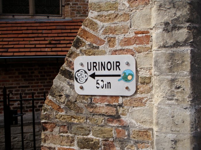 Not sure what this means, but I’m assuming you’re supposed to take a leak on the wall in 50 meters.