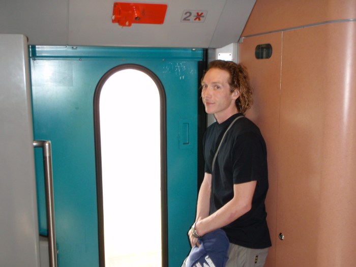 Hiding out at the back of the train because we “tried” but couldn’t find where to buy tickets. haha. yeah…
