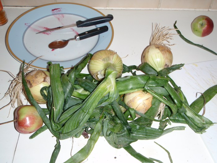 New day–Saturday. Something smells, but for once it’s not me. It’s the giant heap of onions in my back pockets.