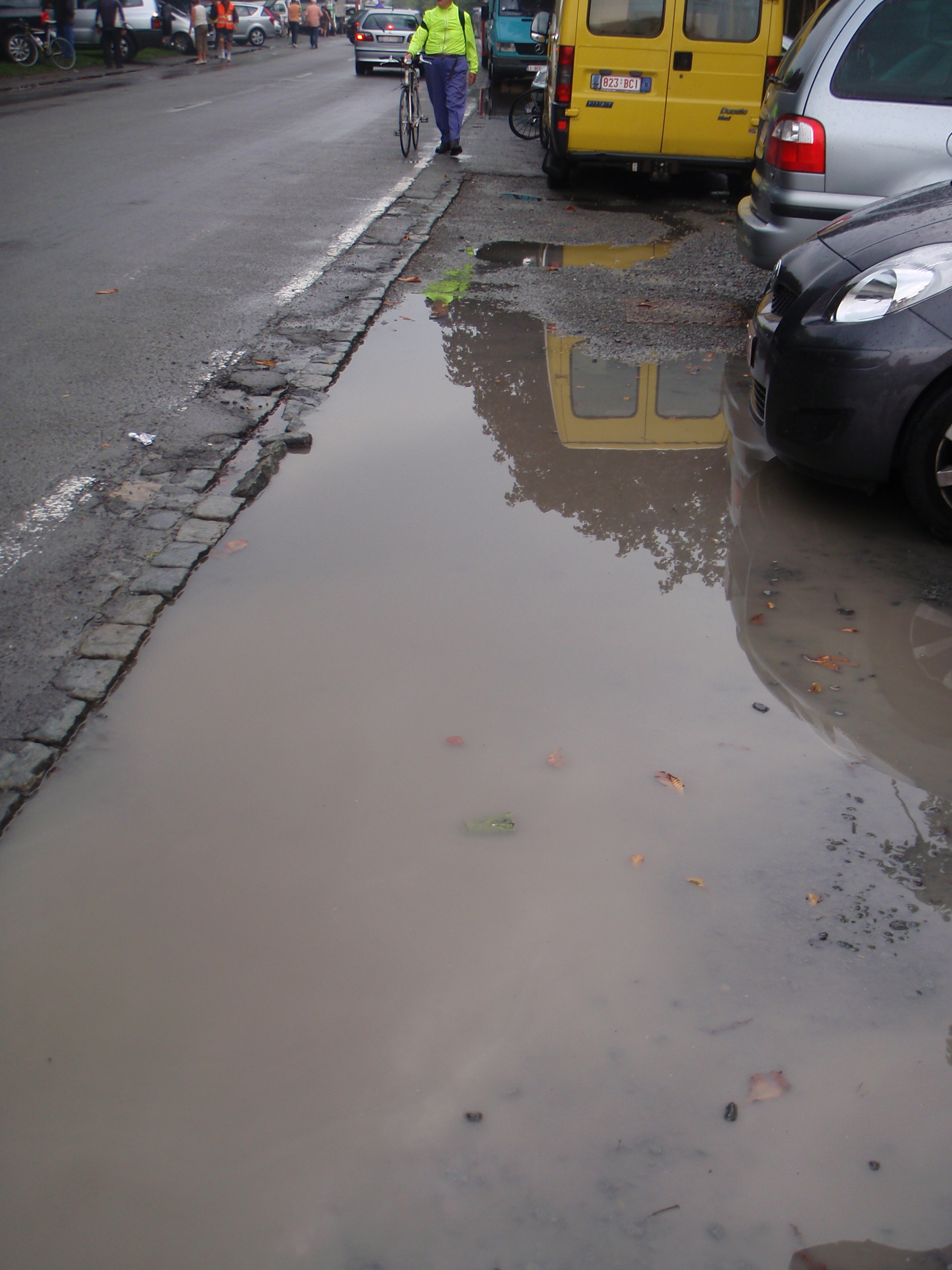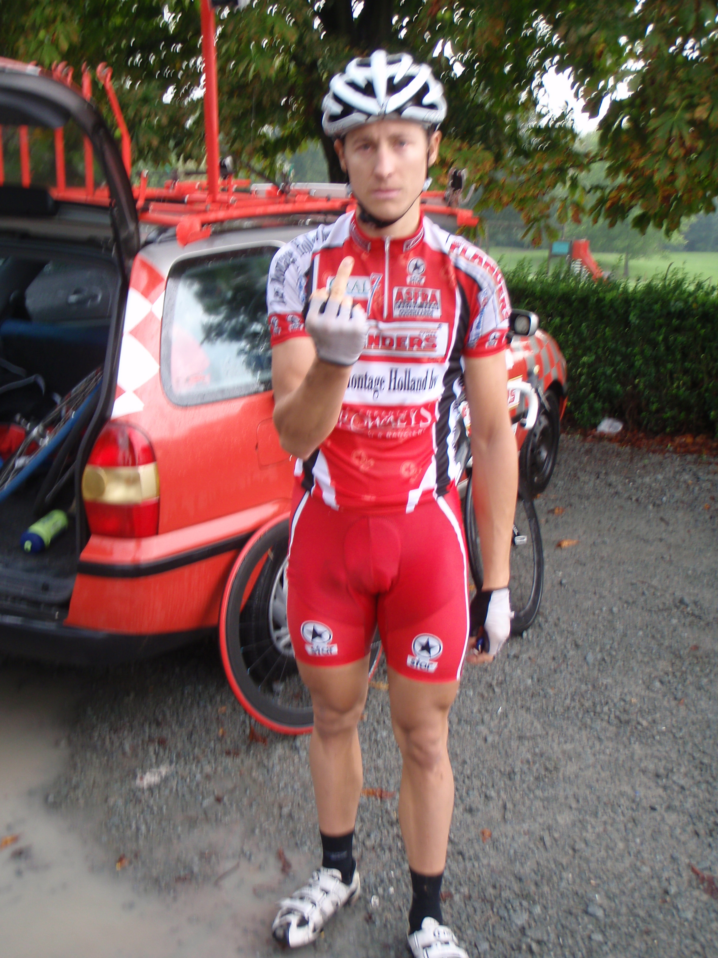 I screwed up at the finish and ended up on the front with 600 meters to go. Should have attacked. The guy who’d been sitting on, who had been dropped a few kilometers earlier, caught us by surprise as we sat up for the finish, and he blew by us. The guy with the teammate up the road went next. I came within a foot of catching him but needed another couple meters of race to do it, coming in at 8th place in my 8th race here. My best result by far and also the most frustrating, seeing that it could have been me on the podium today if things had gone slightly differently. I went with almost every move, every split, attacked repeatedly, had the legs to continue to do so, but missed the winning move. One of the Lotto guys won. I stood in the pissing rain and spat the most venomous curse words I knew and ground my teeth for the next fifteen minutes. I don’t know enough curse words.