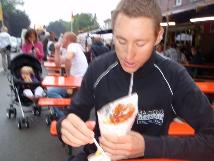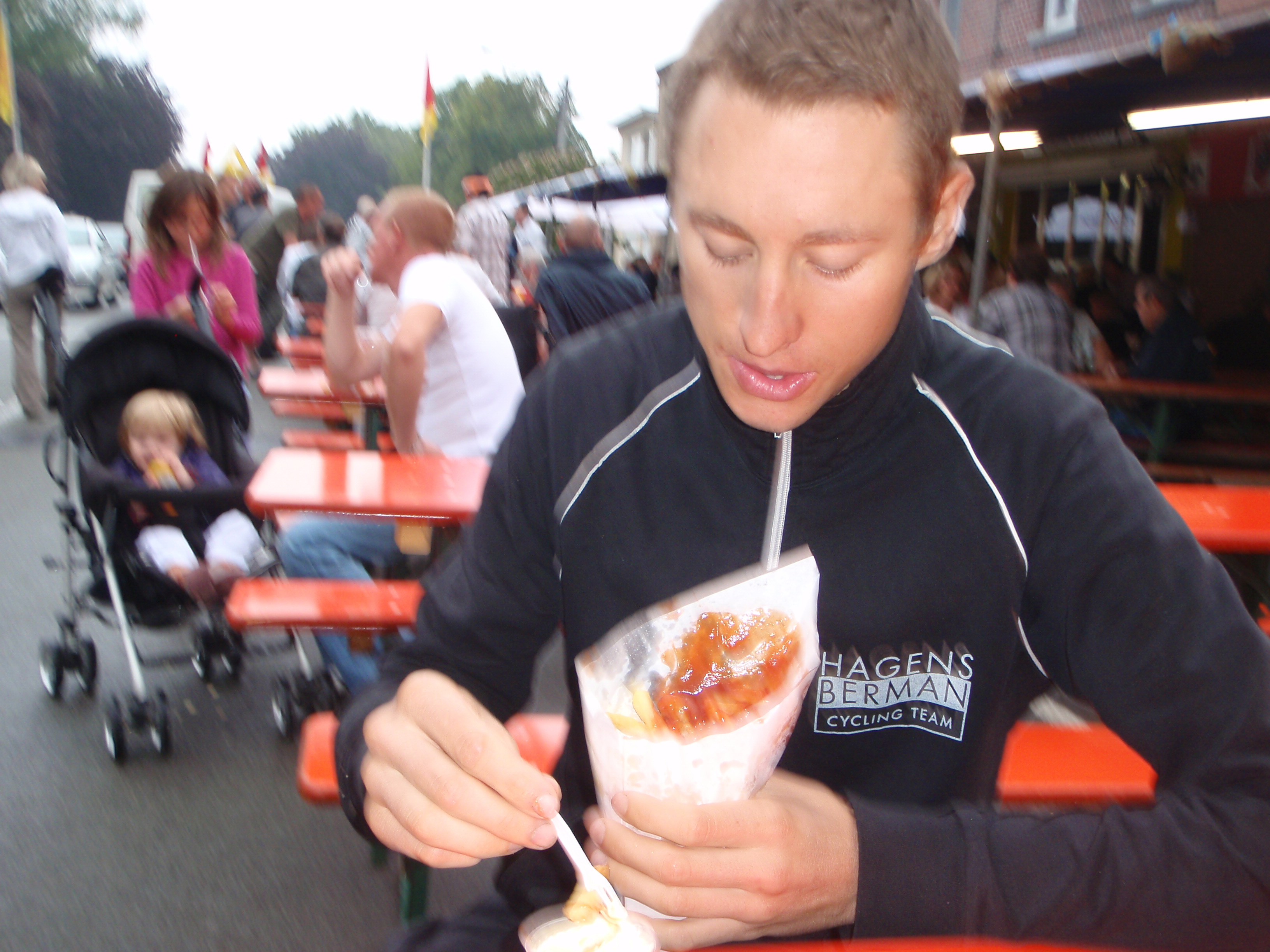 Today’s race (Thursday) took place in the Wallonie region of Flanders. A mere 21 miles south of us here in East Flanders, Wallonie is a mystically strange land populated by the French. The breeze blows a refreshing air of self-importance, reminding me of home.