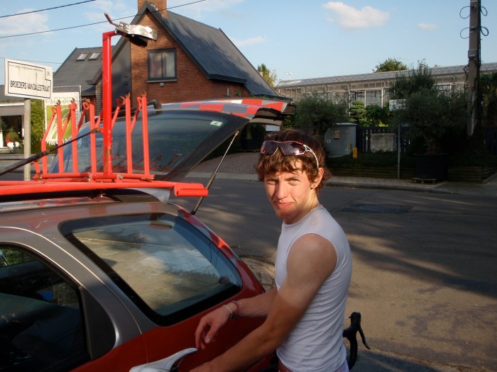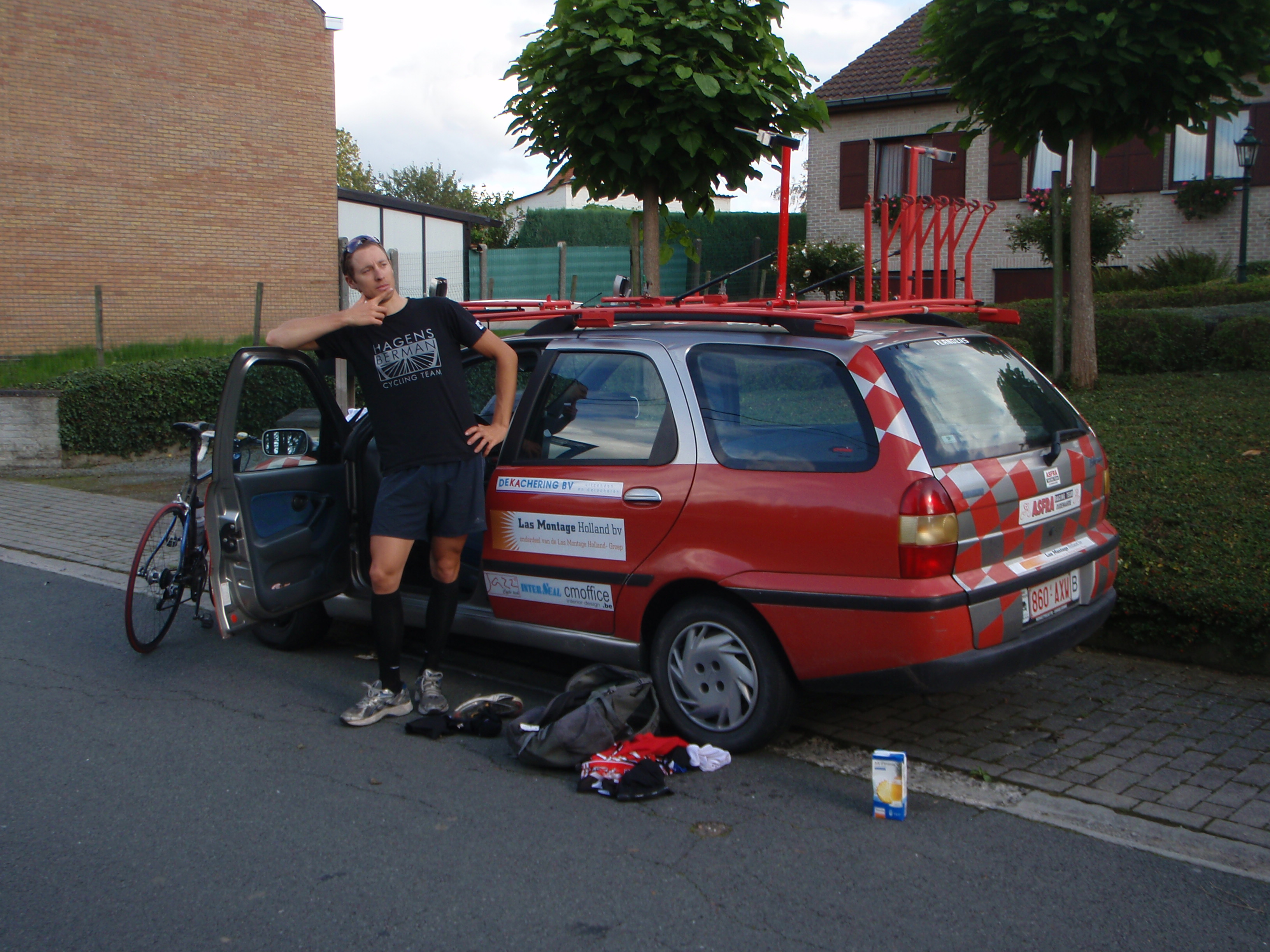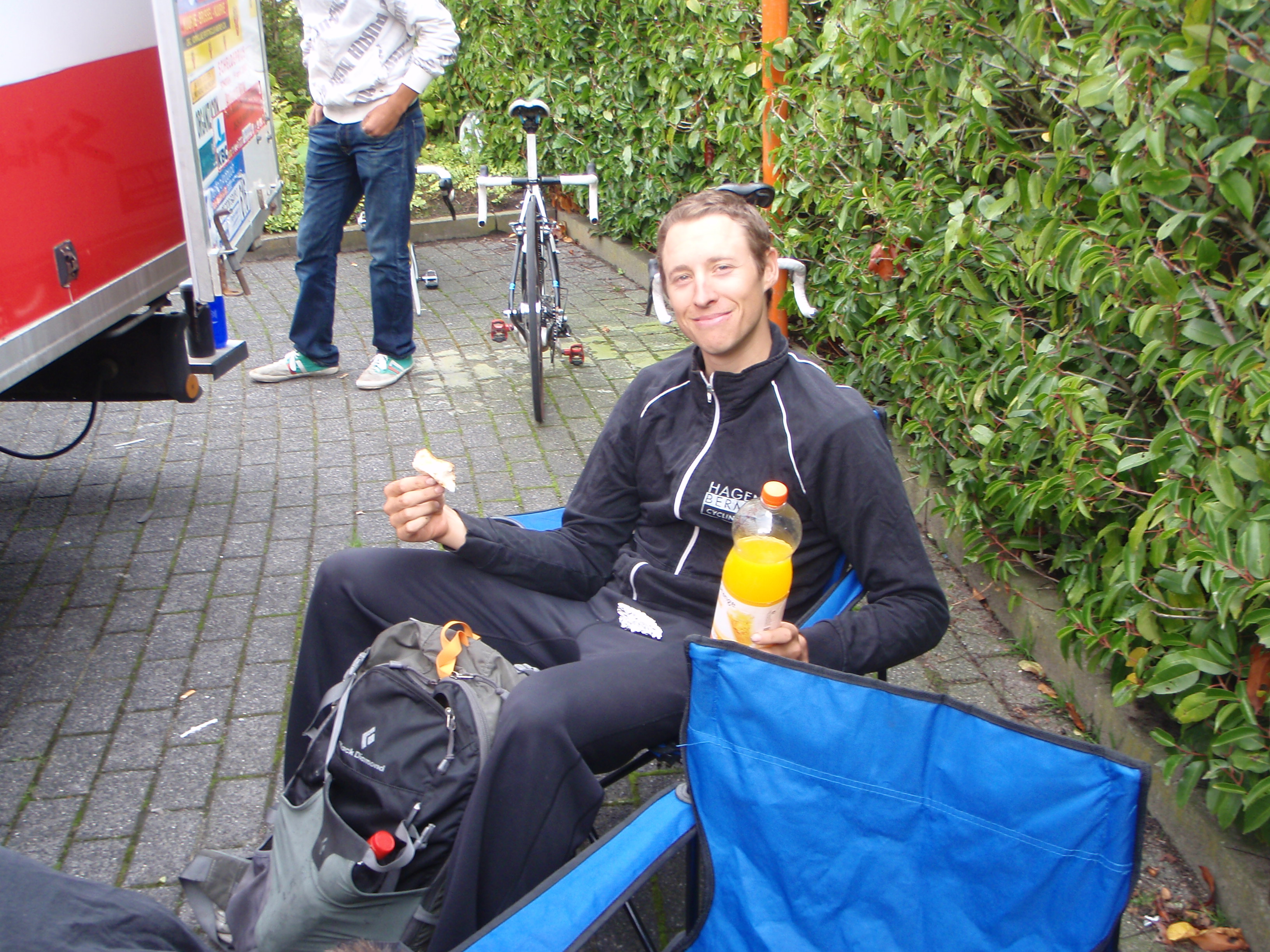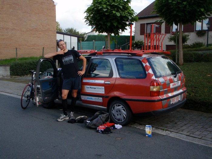 By Saturday I was still feeling bad, but decided to ride anyways and test out my legs for the interclub on Sunday—a hard, hilly race in the Ardennes (the southern Wallonie region of Belgium). I rode for 17 minutes, felt a near bonk coming on, turned around, and went home. On the mend but still sick. Tomorrow was going to be a long ass day. I’d been looking forward to this race for a whole week and wasn’t going to miss it. Plus the next race after it wasn’t until Univest on the 17th. Plus I couldn’t pass up a free meal of rice pudding sandwiches and granola bars (race food provided by the team).