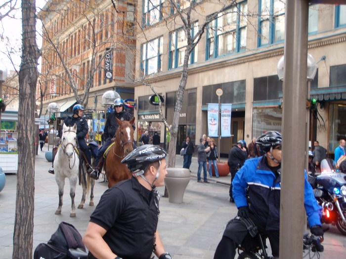 Then we got to talking about cycling.  Turned out he was an ex-kilo track rider (explains the dopiness) in the 80’s and a former member of the national team.  We soon began talking shop about the Tour of Colorado and such.  After some chummy conversation I snuck in a question asking him what he thought about the Occupy Movement.  He said he was confused about what it was all about and I could tell that he didn’t fully support it, though I’m betting this was the kindest he’d ever talked about it and probably didn’t speak that kindly about it in front of his colleagues.  I told him it was unfortunate that it had become a cops vs. protesters thing, and that I hoped he saw that that was not at all what it was about.  He agreed.  I said goodbye and took off since I had a job interview at 4.