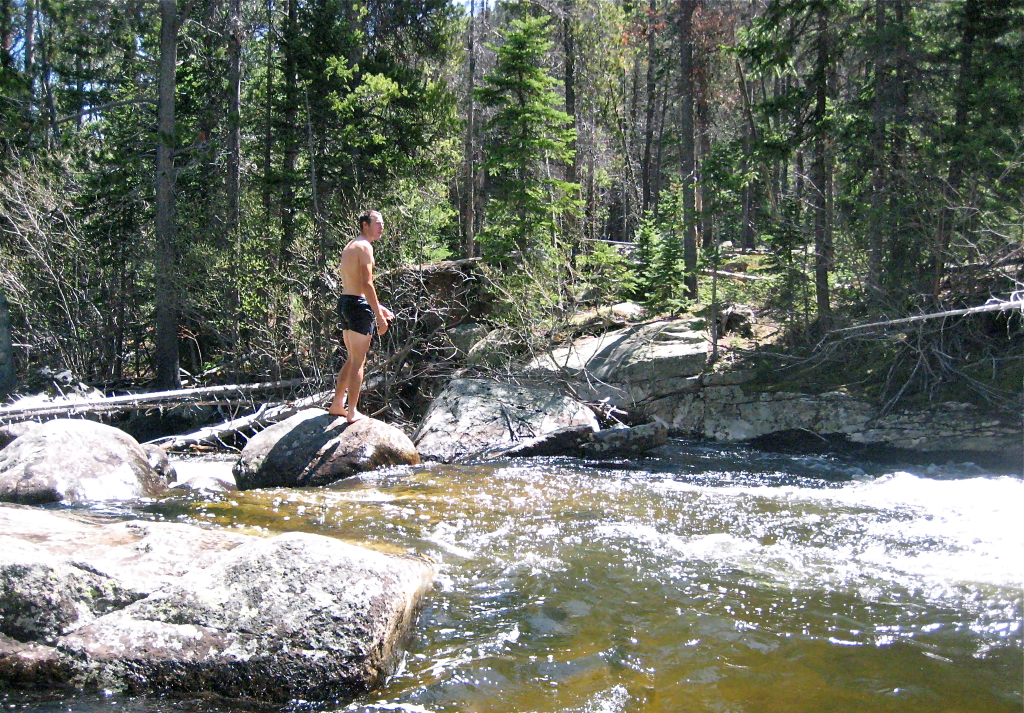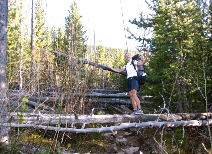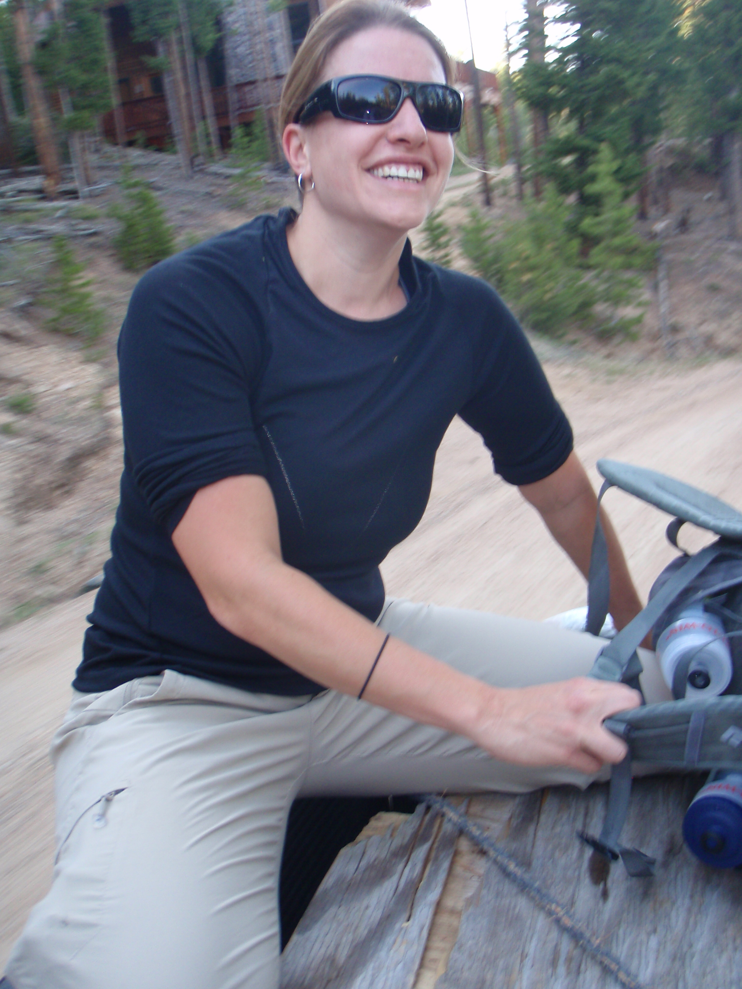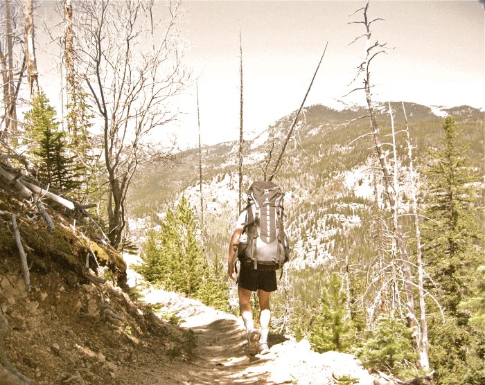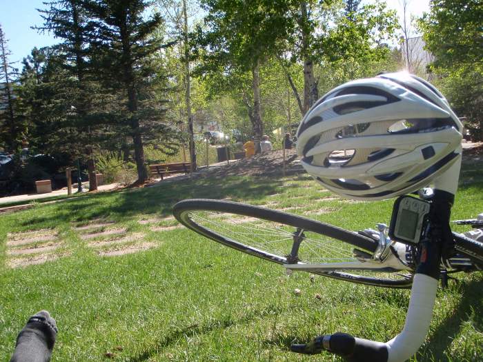 For those of you who don’t know Dan Harm, he’s a bike racer who also does other things. Like hiking, building trails in the mountains, chopping wood, bike touring, weight training?, etc. I decided to do other things a few days ago too: a one-night back pack trip with my roommate, Kim. I rode up to Estes Park in the mountains, we hiked, then the next day I rode home. This wasn’t a true Dan Harm adventure though, because the ride there was only 3.5 hours and our total hiking distance was only 13 or 14 miles, but it’s mid race season and my wise guru coach Sim Jinson wouldn’t want me doing anything too extreme.