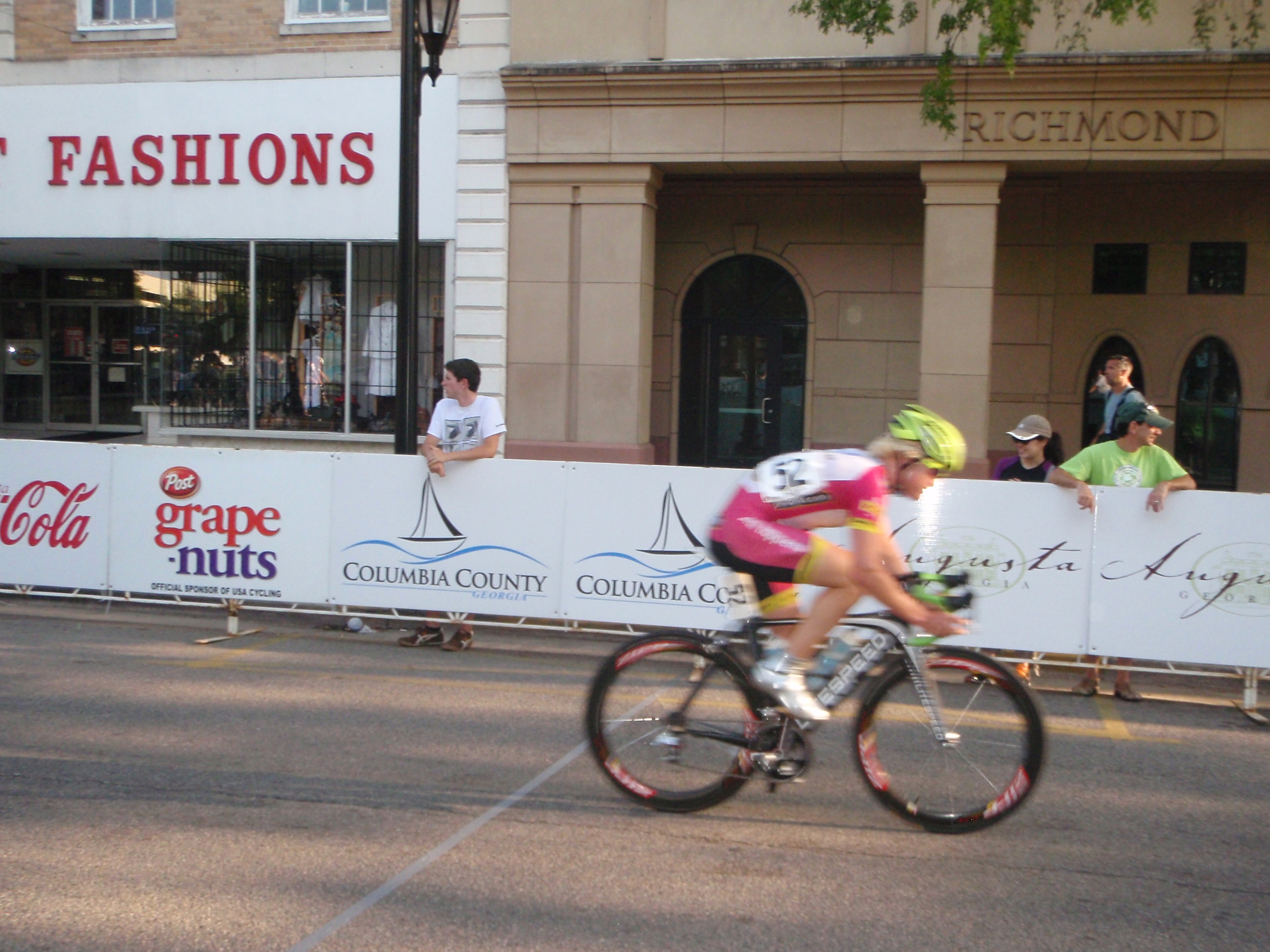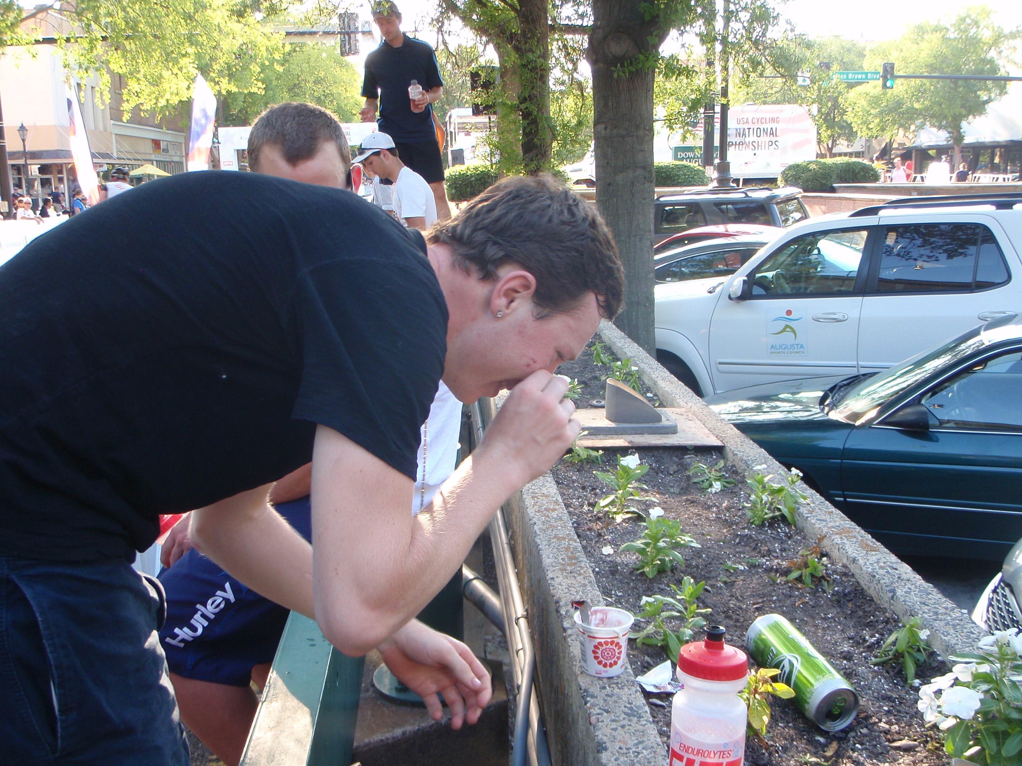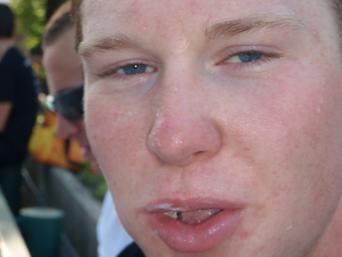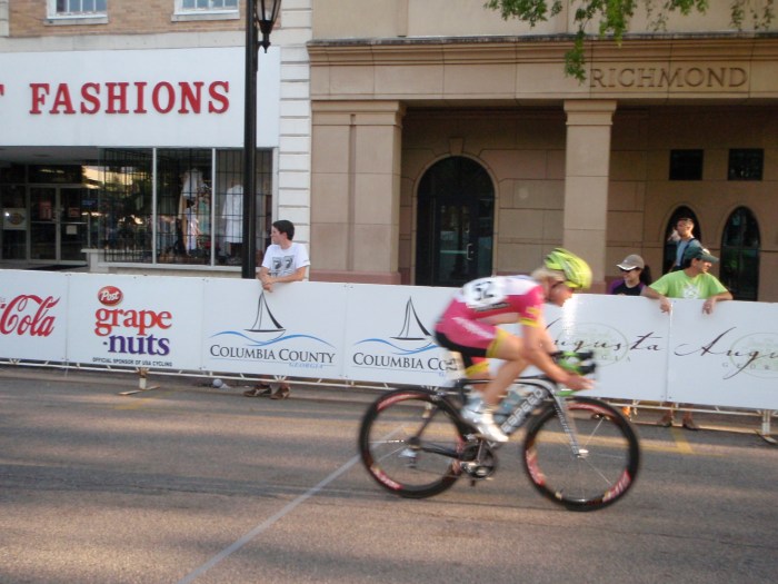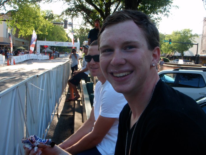 The next day was less warm and sunny, and in fact it threatened to rain during the crit. I rode out there for a warm up and we raced hard. I followed a few moves in the first half of the race while the peloton split up, soon becoming just a group of 30 or so. The pace was hard and there was a slight hill and a fast downhill turn that always required sprinting out of. My legs were slowly awakening this weekend, but weren’t quite awake enough at this point to really hammer hard. I ended up 11th but made up for my lack of glory by ransacking the vendor’s tents and scoring a free post-race massage and plenty of FRS to keep my quercitin stores fully stocked for the rest of the month.