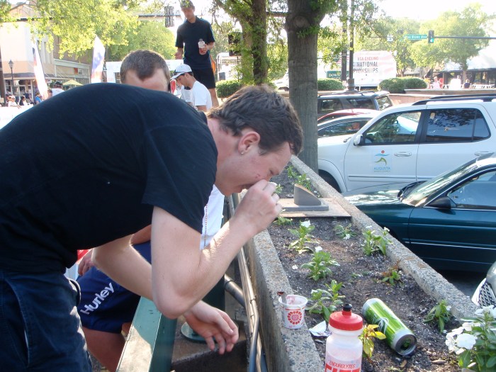 Next day: damn I was tired. But it was so hot and sunny out that I HAD to do a big ride and got in 4.5 hours of mountains. The next few days I spent some time on the TT bike and a lot of stressful nights at work (on Saturday night I made $173 in tips!!–super busy for Ras Kassas). By Saturday I was sufficiently rested to attempt a Shaky Ride. It stared out well enough, but by the time I began the threshold interval three hours in, I was cracked from the heat. I finished off the 40′ threshold climb with another 40′ climb. I sufficiently enjoyed the suffering and the heat. I was feeling great being back on the bike after that long rest period post Gila. After the ride I went to Ras Kassas and began serving people their food on Shaky legs. I have one major pet peeve when it comes to serving customers. I can’t remember if I’ve mentioned this before, but when someone doesn’t want ice in their water and I’ve just brought them water with ice and they have the nerve to ask me to get a new glass of water for them with no ice, well, that just doesn’t sit well with me. I usually end up just setting their glass of ice water at the bar until the ice melts, and then I bring it to them 15 minutes later. Okay, usually I don’t do this because I realize how irrational I’m being. Usually I drink their water (so it doesn’t go to waste) and fill a new glass without ice, just like a good waiter. But sometimes I’m not in the mood. Tonight was one of those nights. Having just burned 5,500 calories on my ride in 90 degree heat, it’s a miracle they got any dang water from me at all.