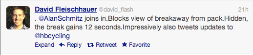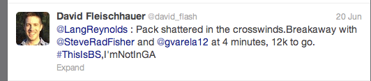 I think it was the fourth time up the wall that things blew apart once and for all. I noticed a large gap open to seven riders up front as we got to the steepest section of the climb. I gave it everything to move myself up to the front of the pack and then gave it everything once more to close the gap to the guys off the front. I barely got on over the top. Then it was false flat and crosswind. I was hurtin’ somethin’ good now ! We were away, eight of us, and there was some good fire power in our group too. I held on near the back and made myself as small as I possibly could, trying to recover before the next climb. I did not. I came off immediately once we hit the base of the next climb. My legs were dead and I had nothing more to give.