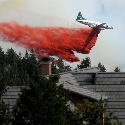 I looked up from the melting pavement as I rode from the post office to Suflower Farmer’s Market, my favorite grocery store of all time. What I saw made me do a double take. A huge plume of smoke was spreading into South Boulder, just a mile away, like fallout from a nuclear bomb. The air was thick with nasty, brown smoke blowing quickly east due to heavy winds coming off the mountains in the west. The sky was buzzing with helicopters and jets dropping red fire-retardant chemicals. Shit.