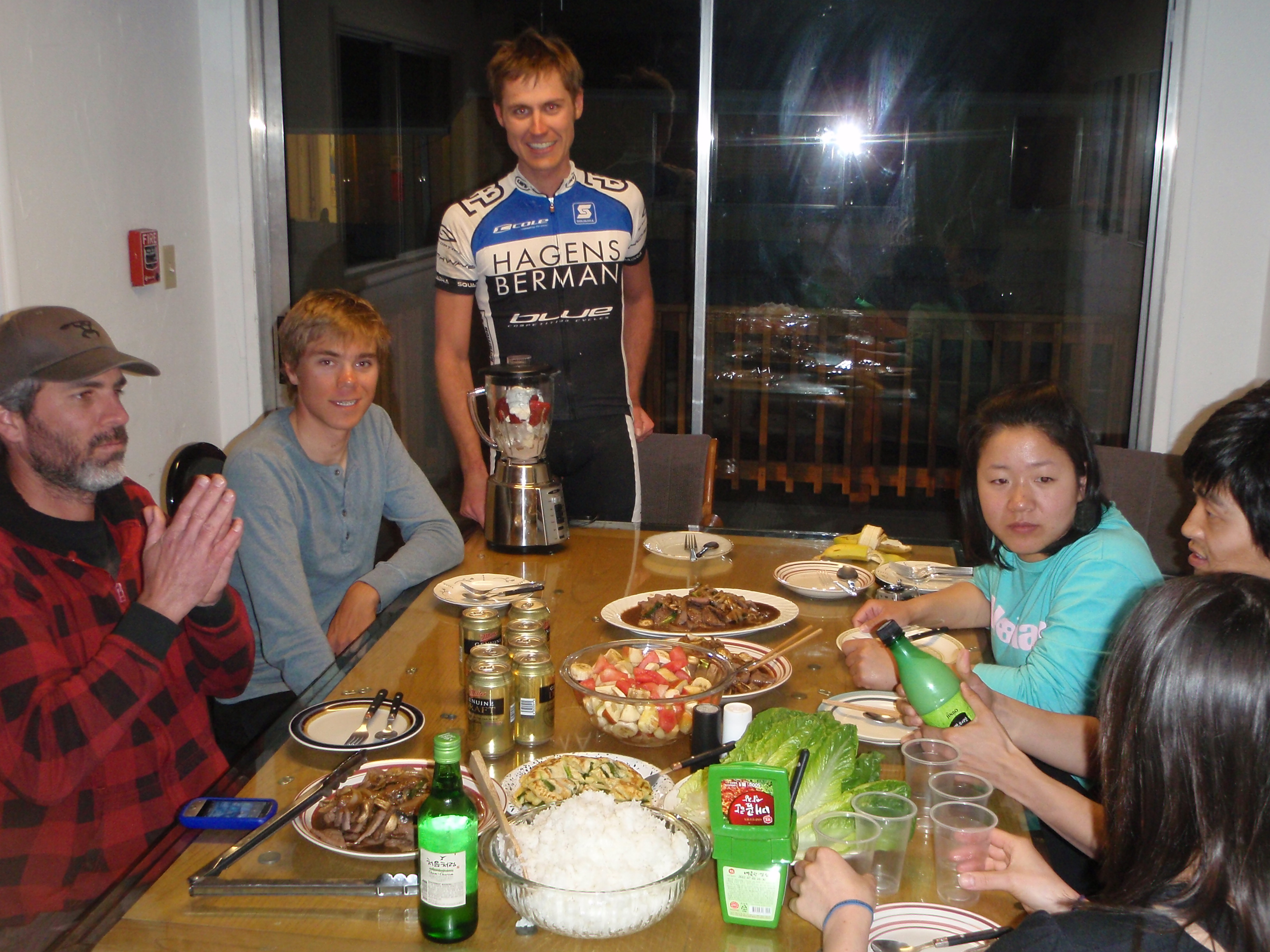 2011. Having a Korean BBQ dinner with some of the other people in the hostel. Looks like Dan just finished a 6-hour ride.