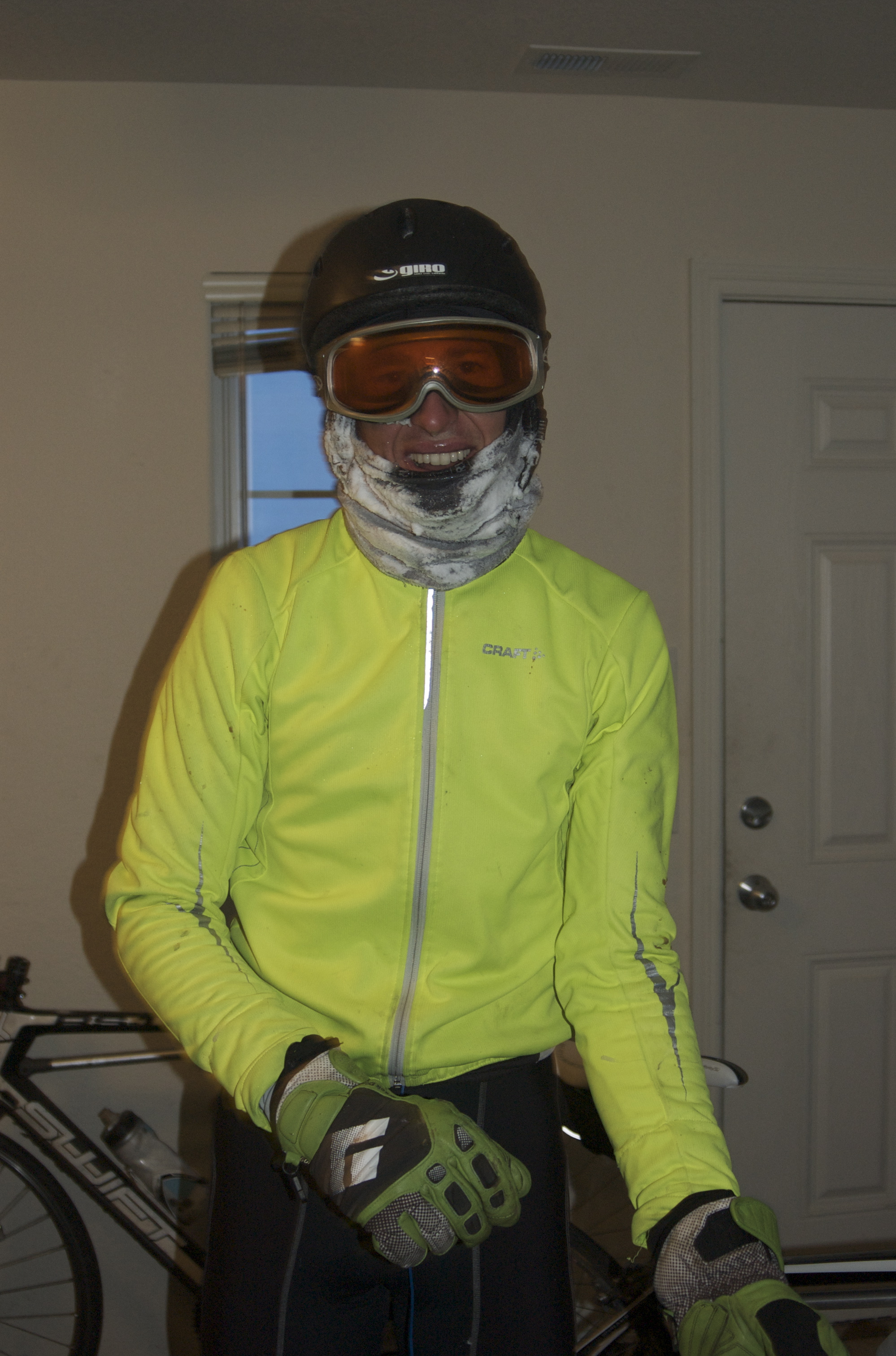 Sat December 7th. “5 hrs. AV probably around 260 to 270 judging by speed (Quarq wasn’t working in the cold). AV temp was 2.9 degrees, minimum was -2. The roads are still icy so I was confined to hwy 36 and 66 or whatever that T-intersection one is. Did 3 laps of an L shaped route. I felt strong but was pretty tired and lagging for the last 45 minutes. Feet took forever to unfreeze and were swollen all night.”