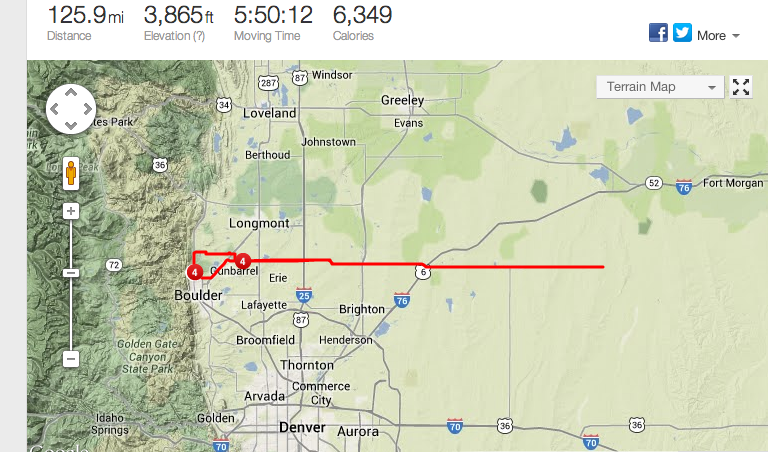 It’s crazy how fast things can turn around. Last week on the 21st I went on a big ride out east with Adelaide, who held on for dear life during that first hour before dropping off on her own. It was cold, the trees and grass were full of thickly frozen frost, and the route was almost entirely flat. I planned on making zero turns. I rode 65 miles east on a big highway that slowly transformed into a silent little road with nothing but slightly rolling fields of 1-inch tall grass on either side. Or maybe it was just dirt at that point. Dirt farming is big out in Eastern Colorado. Not sure why they grow so much dirt out there but I guess it comes down to supply and demand. There were no cars, houses, buildings, or telephone poles. Not even any cows. I looked back west towards the mountains and there was no sign of them. Everything was grasslands/dirtlands as far as I could see.