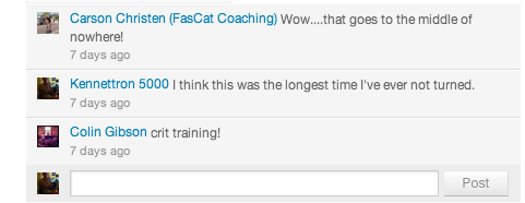 I’ve been doing more sprint workouts than I ever have in my life. I usually don’t start doing sprints until the Redlands crit. I’ve also picked up where I left off with those 30 seconds on at V02, 30 seconds off at tempo intervals. They’ve been going very well. Even the first set I did was way higher than I’d hoped for. But I’ve been struggling with endurance/tempo–something that I’ve never struggled with before. And I’ll tell you what–it’s been scaring me! This is what I DO. Five and six hour smash fests are what I’m known for.