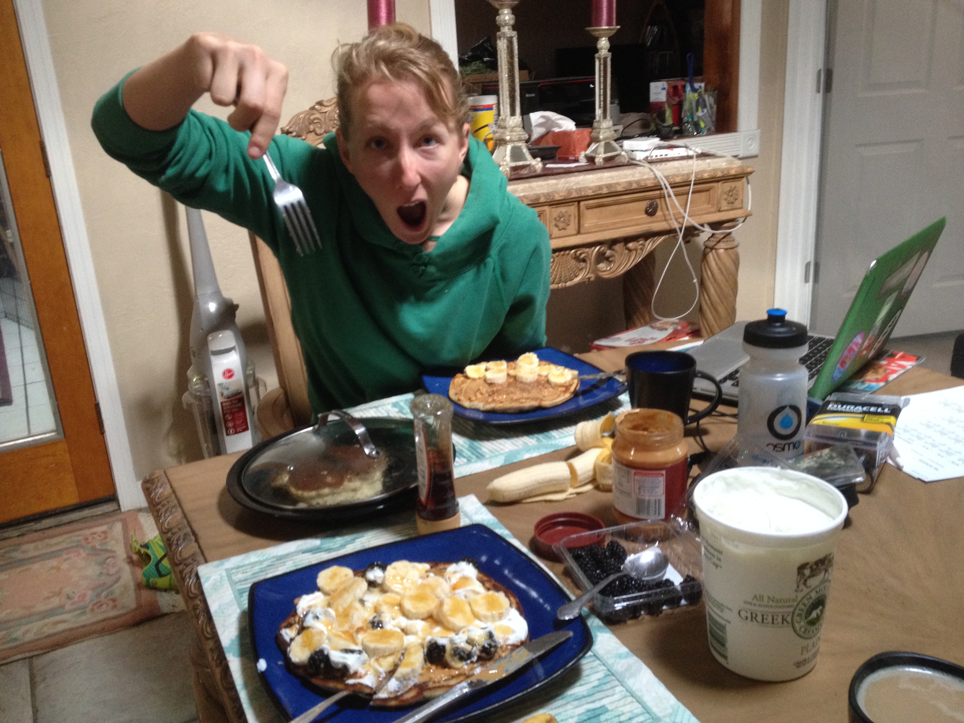 Typical breakfast for a big day of training or racing. GF pancakes, yogurt, peanut butter, honey, banana, berries, green tea, and coffee. Adelaide rode 6 hours to the top of Mt. Lemmon (the real top up to the ski lift, which is 27.5 miles of climbing). I went to mile marker 7.