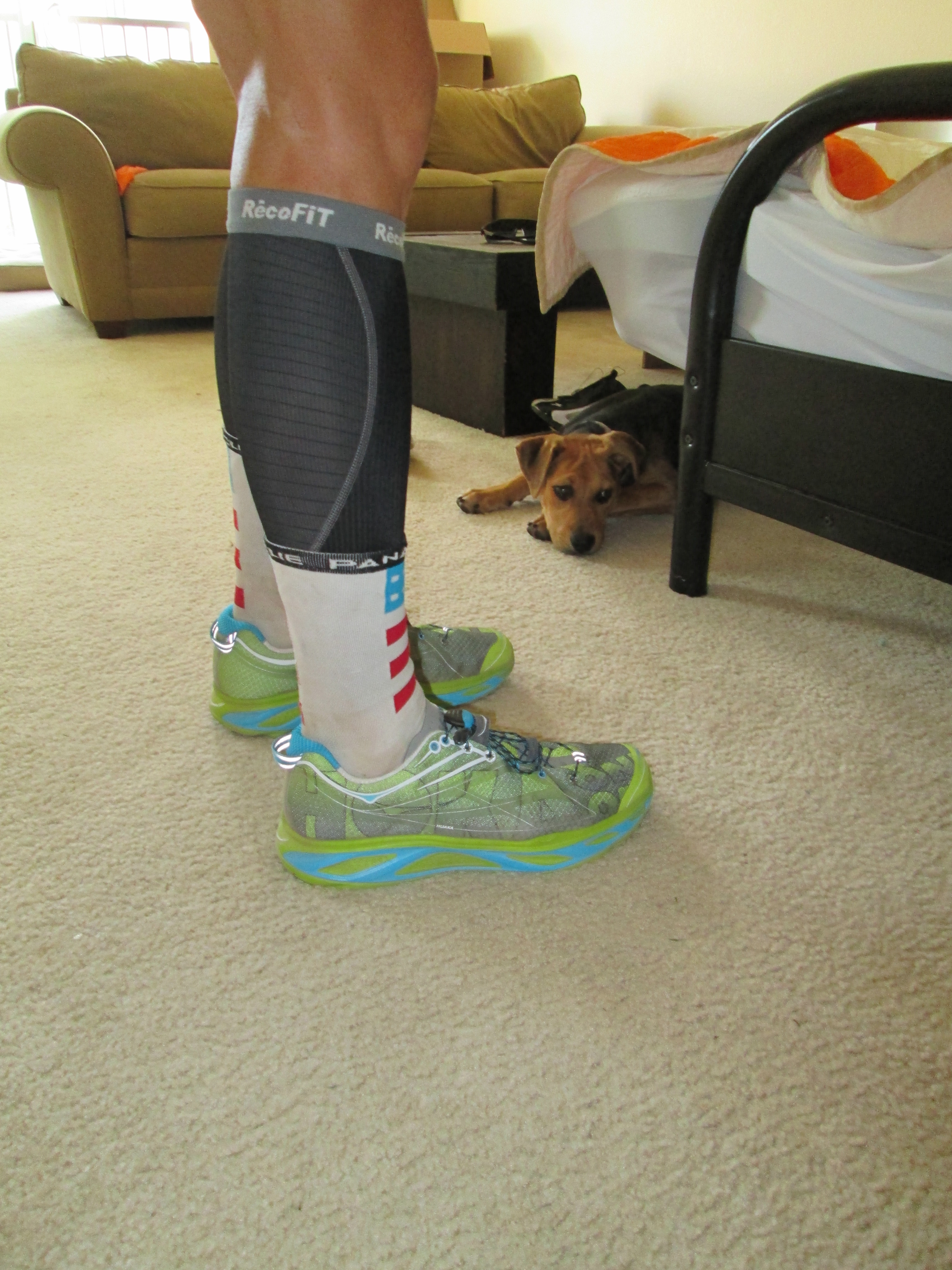 To speed my recovery and reduce the shock to my feet, pro triathlete Erich Wegscheider (a former roommate of mine) sent me a pair of Hoka Ones, which are extra-supportive running shoes. They weigh nothing and offer padding like none other. Thanks for being such a great ambassador for your sponsors Erich, and thanks for the shoes!