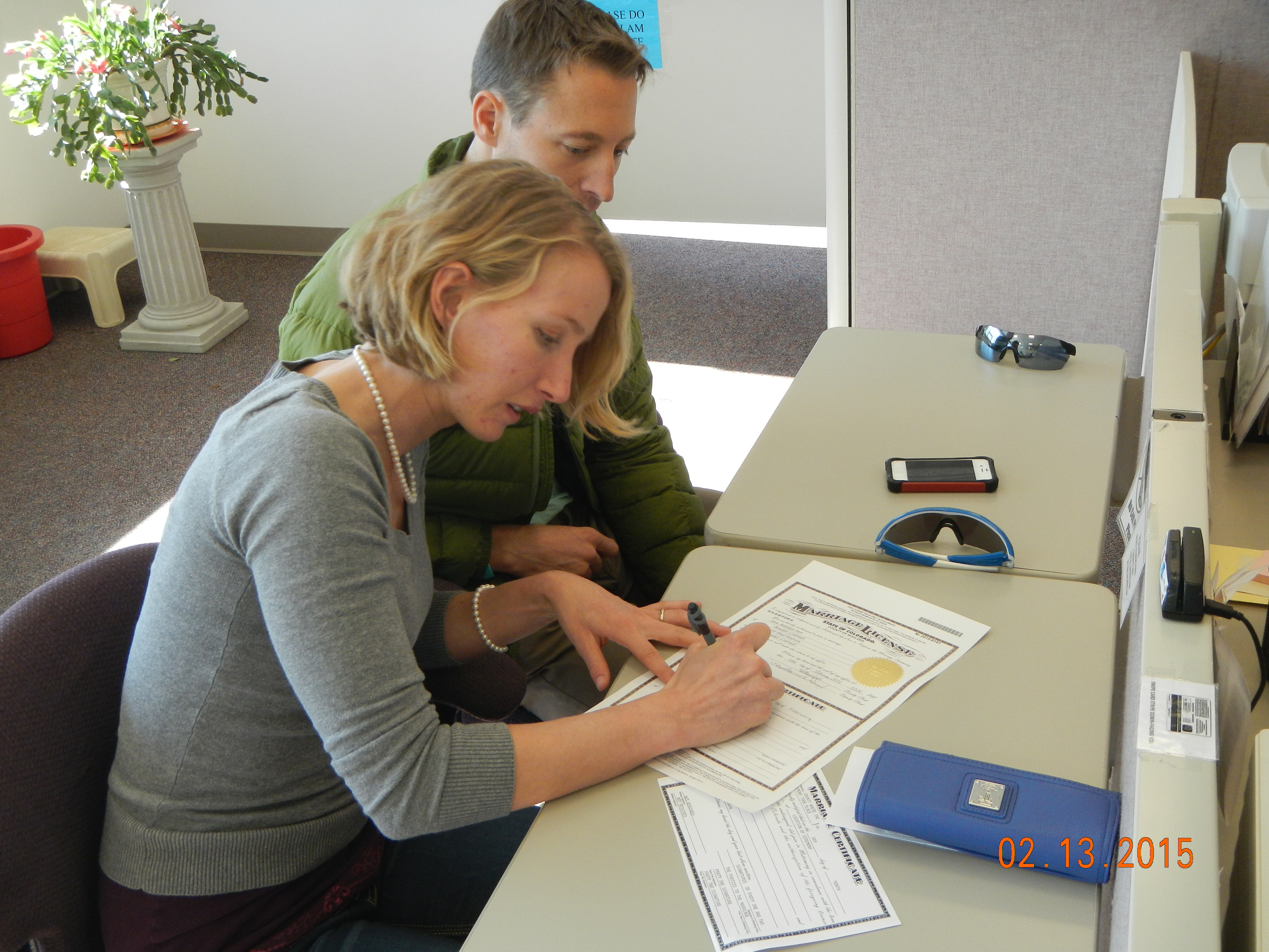 Yes, I got married in my puffy jacket. I also wasn’t wearing clean pants. Or underwear. You may be asking yourself why Adelaide decided to marry me. I’ve wondered that at times too but have wisely never prodded her on it. Regardless, she’s mine now! That’s what these documents say right? That I legally own her?