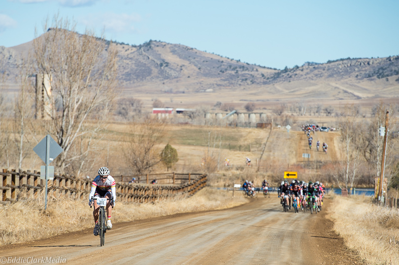 We started out with a group of 300 from Lyons. All types of bikes and riders were present for the 60-mile event: road bikes, cross, mountain, fat bikes, racers and non racers alike. The first 10 minutes were the most exciting (aside from seeing Tom Danielson at the start! He’s my hero). Heading down highway 66 with a strong wind at our backs and coasting at 30 miles an hour (neutralized) behind a police escort car with about 90% of the field probably having zero pack skills, we approached the first of many rough dirt sections. We took a 90-degree right turn and the race was on and the police car took off. The pack dove into the corner and fanned out across the narrow dirt road, immediately freaking out a horse with a rider on its back that was in the oncoming lane on the far left side of the road. No one was on a trajectory to hit the horse until it whinnied, back pedaled, reared up on its hind legs, and toppled over backwards, crushing its rider. I think the words I uttered were something along the lines of “Holy what the fuckin shit?!” There was no time to look back since the cross winds immediately tore the field apart. Three minutes into the race and the lead group was like 13 guys. I sat in to catch my breath and wonder if the horse was alright (he was, and so was his rider). Josh attacked a few minutes after that into the head wind, everyone sat up, and the group grew to 40 or so. A few minutes after that Michael attacked to bridge up to him and immediately crashed hard over a pot hole. I was right behind and had a very good view of his skull bounce hard off the ground. Actually, more like the ground bounced off his skull am I right!? (Michael is a damn beast in case you weren’t aware).