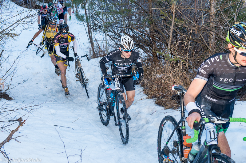 Long story short: I chased down moves and sat on. I had two teammates up the road and I liked their chances better than mine for holding out over the snow and ice of that damn Secret Trail section. I ended up losing between 7 and 8 minutes on it to the leaders, having to run 90% of it since I suck at bike steering. I chased fairly hard for a while then decided to wait for some guys that I was currently passing, going up Old Stage, so I could have some help during the last 15 miles of flat wind. That was a mistake since all but one guy dropped off immediately. I broke a derailleur cable a while later. I caught up to one last group a few miles before the finish that contained Colby, Josh, and one other guy. I was disappointed to see Josh in that group since that meant that he wasn’t going to win and we wouldn’t make any money. There were four guys way up the road, all cross studs, and they took up the three money spots. It was a fun but frustrating day.