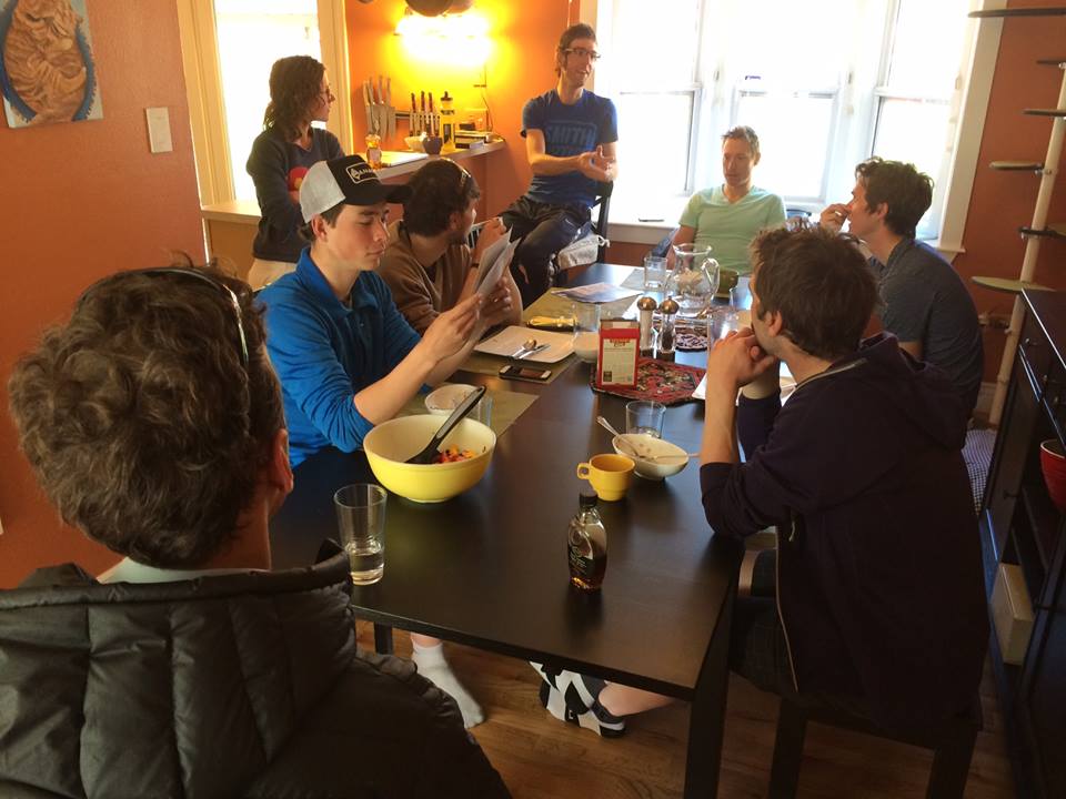 skratch labsThe team checking out Skratch Labs’ lab. Note the key secret ingredient on the table.day 1Left to right: George, Robin, Chris, The Sheriff, Josh.day one meetingTeam meeting lead by Nick and Chris: topics included packing rain bags in the team car, appropriate behavior at a host family’s house, and how to politely hit on a host family’s college-aged daughter.podium lookout ttDay 2. Lookout Mountain Hill Climb TT. Burleigh and Chris putting pink on top for the first time of the year.faith foodPost-ride fried rice, a la team chef Faith.robin day 2 ride We set out for three more hours after the early morning TT. day 3 breakfastDay 3. Breakfast at Chris’.  day 3 leadout puzzleLeadout tactics demonstration with puzzle pieces. day 3 leadoutI’m not sure what Nick was talking about. An actual leadout feels nothing like building a puzzle. That demonstration was lost on me apparently.me restingResting back at Chris’ before the afternoon crit and feeling like shit. To myself: “You know that sick, congested feeling you’ve had for the past two days Kennett? Yeah that wasn’t just in your head you idiot. Maybe you shouldn’t have ridden six hours yesterday.” Obviously I had a feline for maximum healing powers but it wasn’t enough.George CritI started the Ordigger crit that warm, summer-like afternoon but pulled out after half an hour. As you can see from the following photos, the team didn’t suffer too badly from my absence.Robin crit