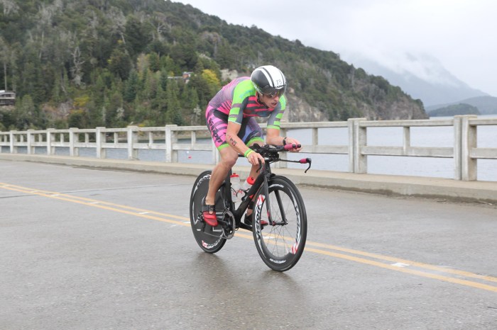The wind was bad every day we were in Bariloche, but right beside the lake it was atrocious. Going one direction I had a nice tail wind, but the other it was a consistent 20-mile-an-hour breeze, with gusts close to 30. Up until about mile six I’d been able to limit my gap to Igor to 20-30 seconds. Second place was within striking distance if I held it together. Then all of a sudden my legs fell to pieces. My legs turned from rubber into melted rubber and my pace began to drop. My breathing was no longer labored now that I was slowing, and my heart rate didn’t even feel that high. I’d fueled well during the bike with around 1,200 calories, and had been sipping 30-40 calories from my flask every mile during the run, but I was quickly losing energy, and TJ was closing the gap.
