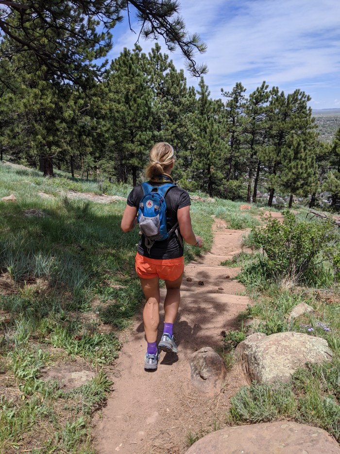 Yesterday Adelaide and I set off to do a Boulder tradition that, somehow neither of us had thought of doing until recently: the Skyline Traverse. It involves hiking and/or running all the major peaks—South Boulder, Bear, Green, Flagstaff, and Sanitas. In total, it was 19.7 miles and 6,000 feet of elevation gain. We drove to south Boulder and were on the trail by 8:00. My guess is that we ran about 7 miles total and hiked the rest. The trails weren’t too crowded and it ended up being a perfect day.