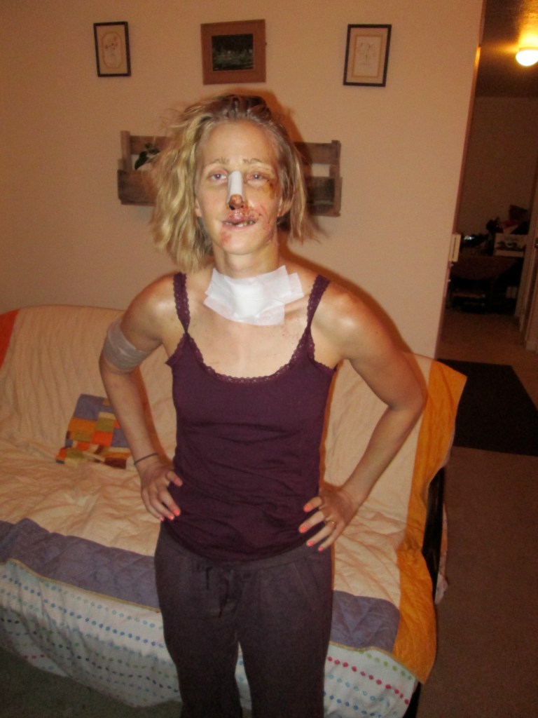 But she wasn’t dead, and I proposed to her that night, despite the fact that she was unconscious. The flesh from the bottom of her lip (including her nose) down to her collarbone had been torn away, and every bone on the left side of her face had been smashed more thoroughly than what could be done with a hammer. One of her surgeons used more than 700 stitches to sew her face back up, and another six hour surgery, performed days later, was required to pin together her splintered cheek bone, jaw, eye socket, and nose. Adelaide remained in a sedated coma for five days during this time, and I passed the endless hours in a state of shock—too dazed to make coherent decisions for myself, make food, or even go on easy runs or bike rides by myself.