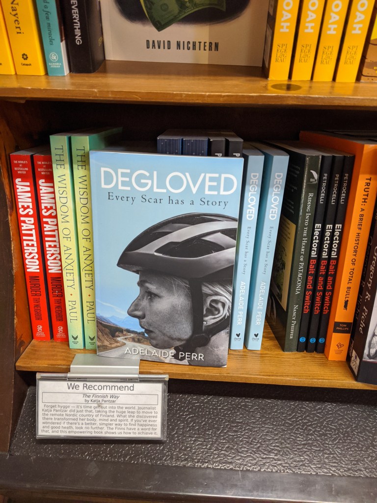 If you know Adelaide or I, Degloved will be entertaining at the best, gut-wrenching at the worst. If you’re a cyclist, a victim of a bike or traffic collision of any type, someone who has been diagnosed with Bipolar, PTSD, or another mental disorder, or a survivor of a traumatic event, there will be plenty for you to relate with in Degloved, and hopefully something to take away. It’s a heartwarming story, a reminder to pay attention when you drive, and a reminder that virtually everyone carries some form of emotional trauma with them—some carry it on their sleeve, others buried deep inside—but understanding and addressing another’s anguish, when they share it, helps bring us all closer together.