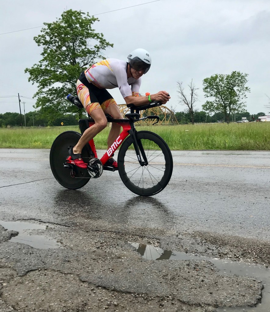 A few miles into the bike and my legs were still recovering from the swim, and I hadn’t managed to pull back much time on the guys who I exited the water with. It’s a long day, I reminded myself. Still though, I began worrying that I might not have it today.