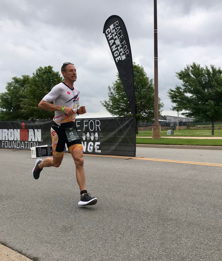 My sunglasses had fogged over immediately out of T2 but I kept them on. Like blinders of a racehorse. Focus. Breathe. Relax. Fight the new chest cramp that’s forming and growing rapidly like a tumor near your heart. Breathe. Stare directly at the feet of the person in front of you. Stop clipping Bart Arnout’s heels. With rain still drizzling down and my mind tuning out everything but the sounds of our panting breaths and wet shoes slapping the pavement, I finally found the feeling that I’ve been seeking for nearly two years.