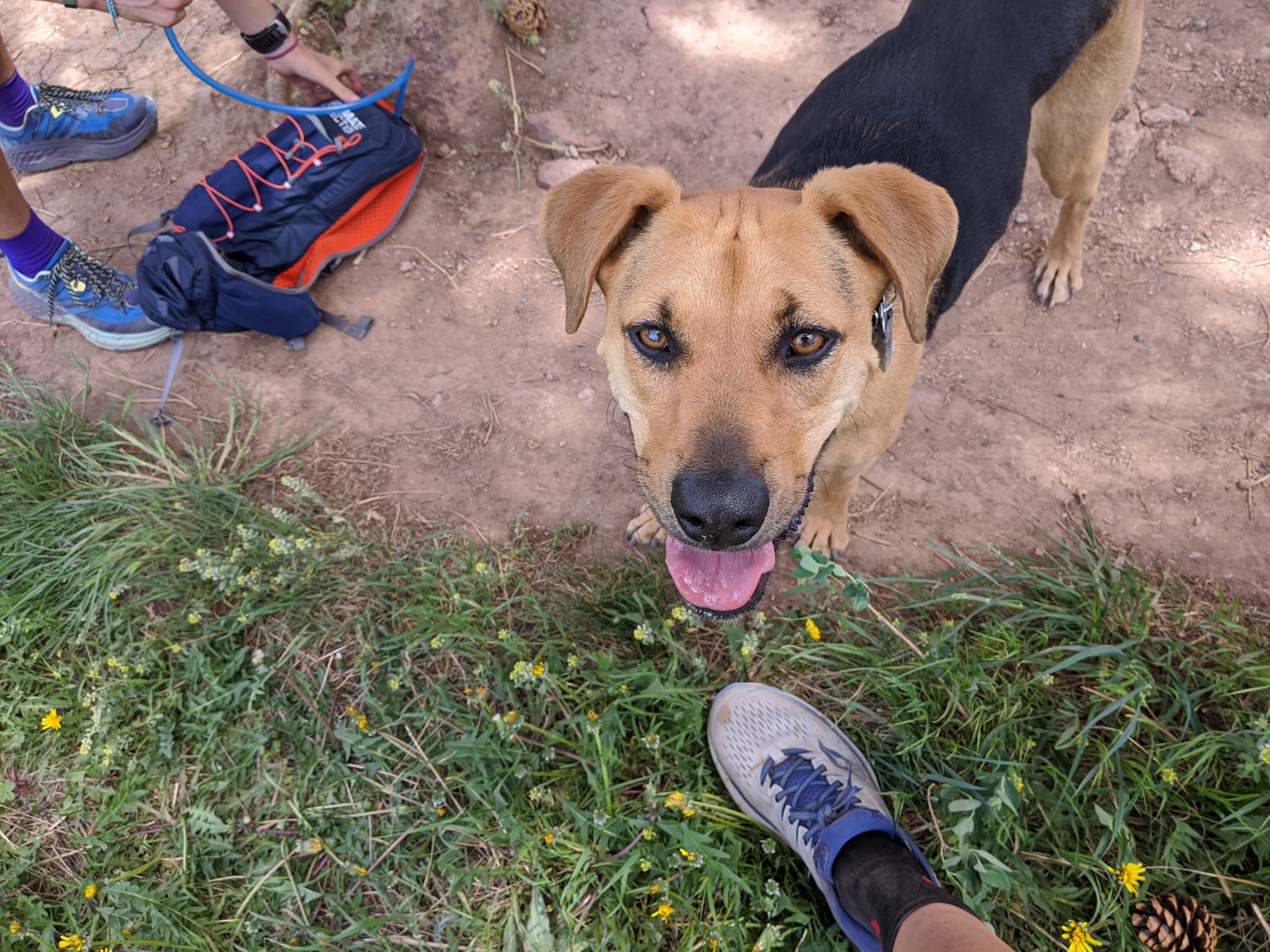 Backside of Sanitas after summiting in the heat of the day. Maybellene was feeling the sun by this point. I believe it got into the upper 80s by the afternoon. We brought five liters of water, but had to refill at Ebin G Fine park earlier. In total, we drank 7 or so liters.